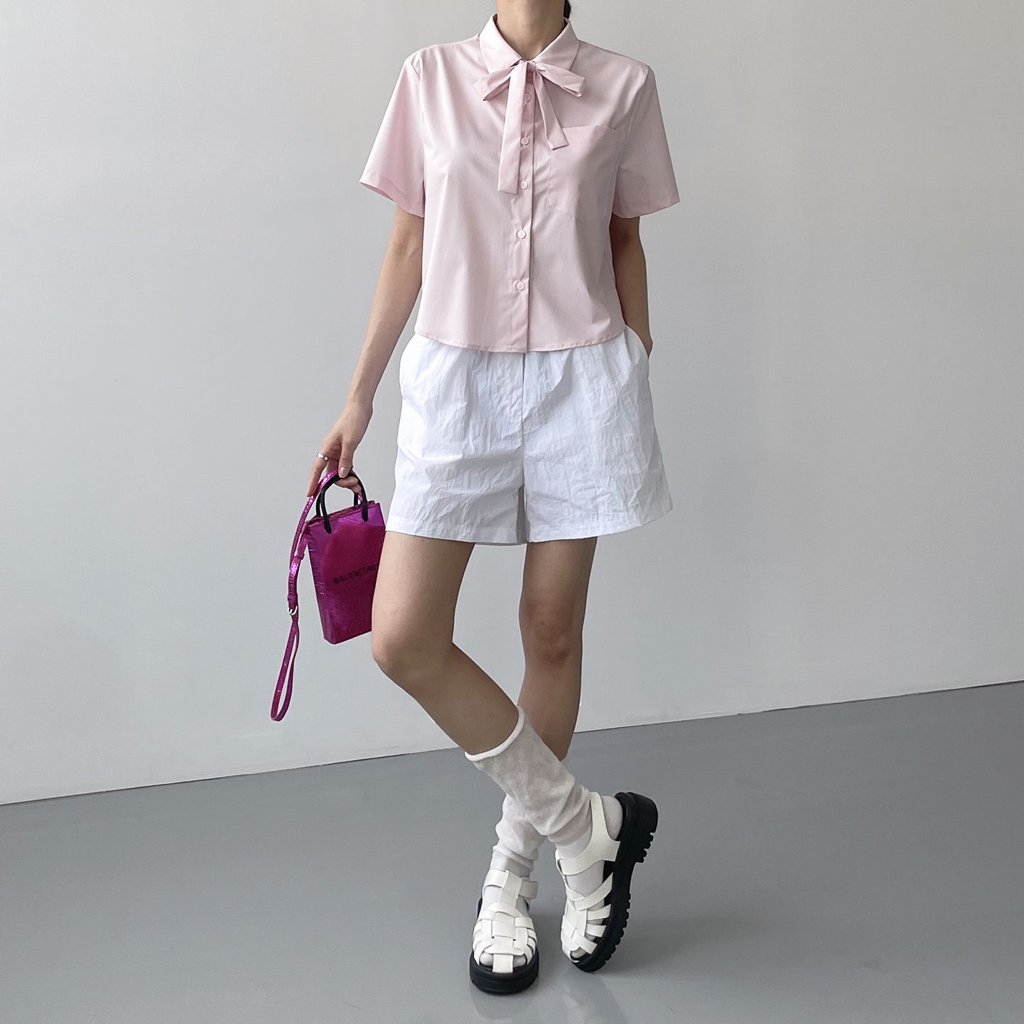 品名:라운드 크롭 셔츠(3컬러,벰부) ◎※☞颜色:블루, 아이보리, 핑크 ◎※☞尺寸:FREE ◎※☞材质:벰부 45%,聚酯 50%,聚氨酯 5% ◎※☞注意事项:只能干洗,只能手洗,不能手洗,机洗,不能使用漂白剂,不能烘干,不能熨烫,不能曲折