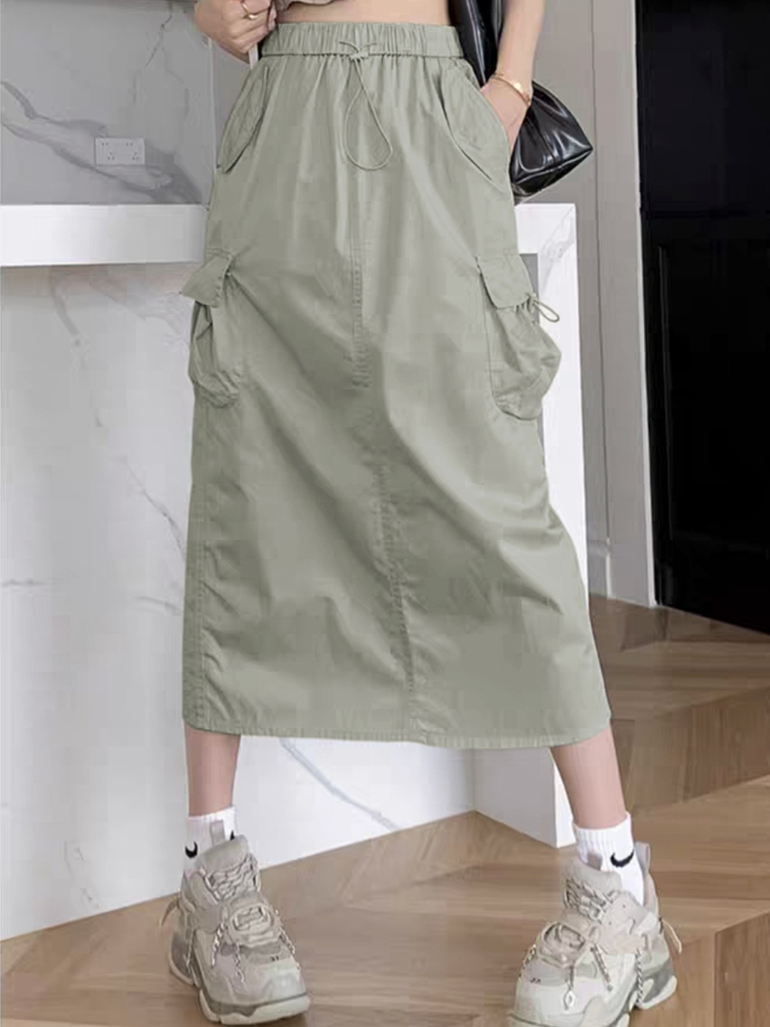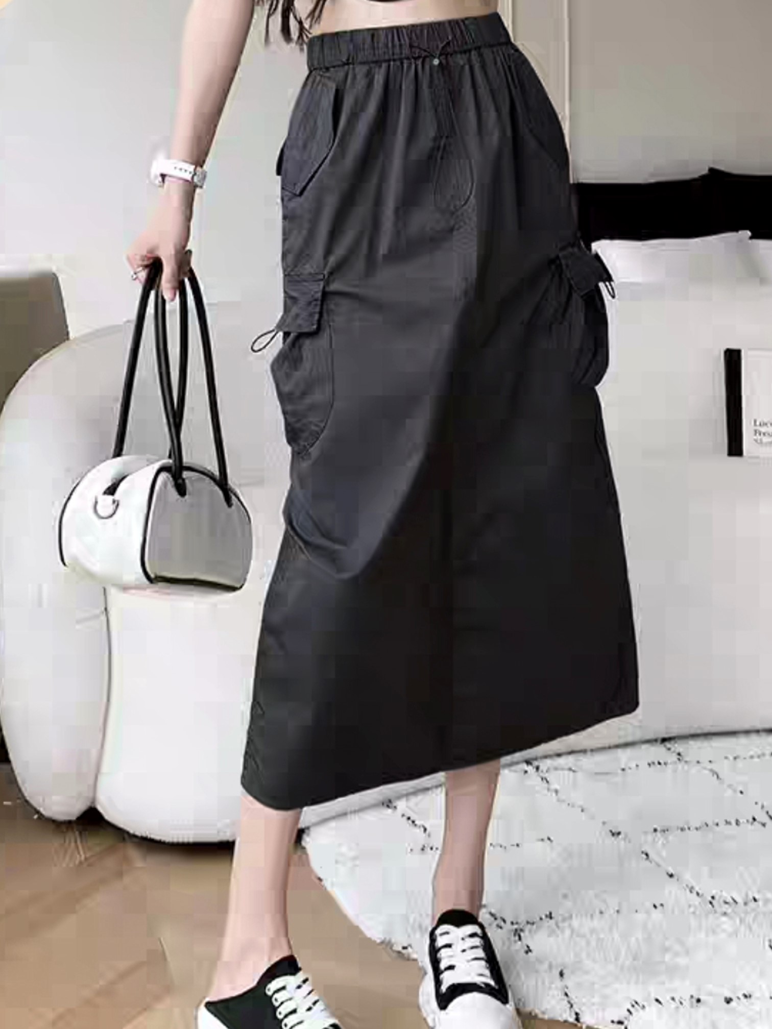 品名:(신상)3306#스트링카고스커트기능성원단 ◎※☞颜色:블랙, 회베이지 ◎※☞尺寸:FREE ◎※☞材质:聚酯 100%