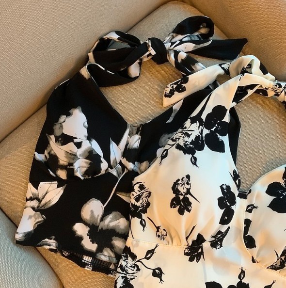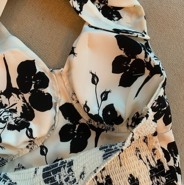 品名:나염홀터탑 ◎※☞颜色:네이비, 아이 ◎※☞尺寸:FREE ◎※☞材质:聚酯 100%