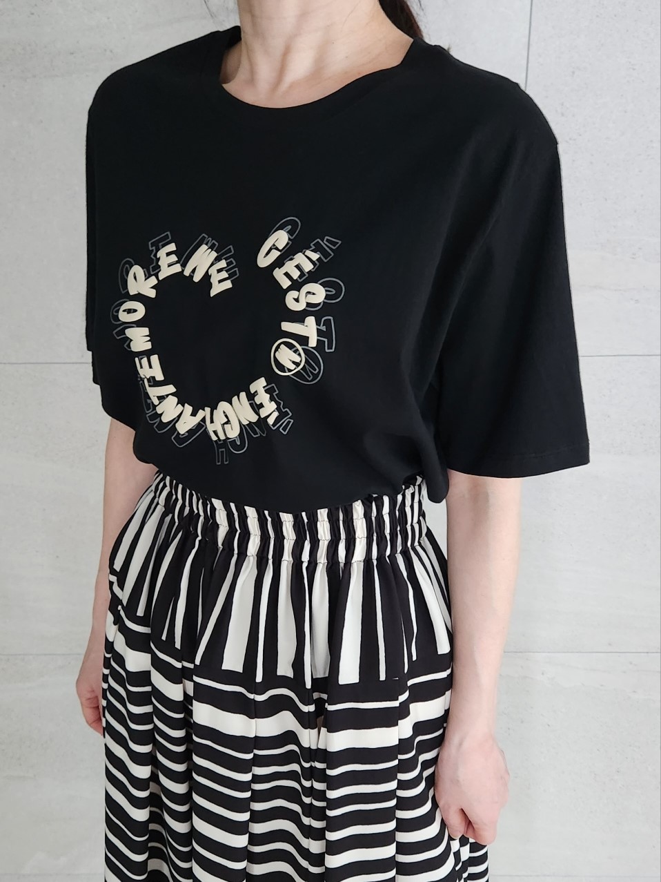 品名:루비T ◎※☞颜色:그린, 베이지, 블랙, 아이보리 ◎※☞尺寸:FREE ◎※☞材质:纯棉 100% ◎※☞注意事项:只能干洗,只能手洗,不能手洗,机洗,不能使用漂白剂,不能烘干,不能熨烫,不能曲折