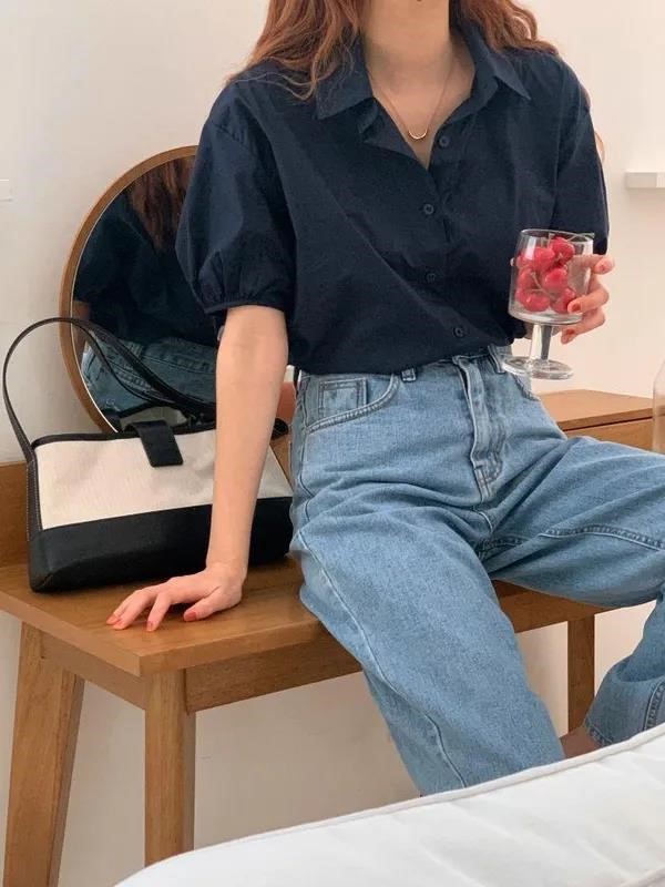 品名:女装上装衬衫 ◎※☞颜色:奶白色,浅蓝色,藏蓝色 ◎※☞尺寸:Free