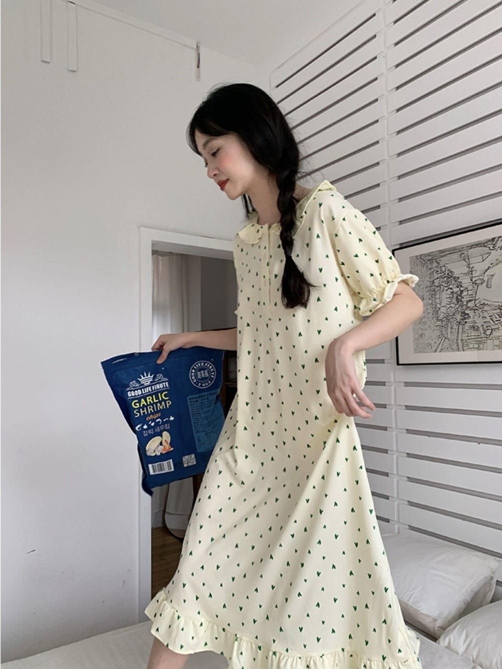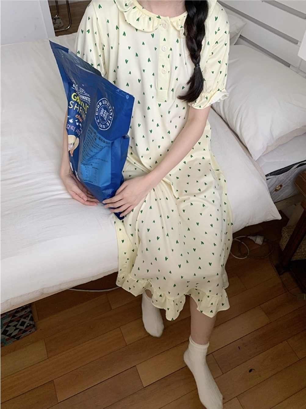 品名:신상 그린하트원피스 잠옷 홈웨어 파자마 ◎※☞颜色:원컬러 ◎※☞尺寸:FREE ◎※☞材质:纯棉 20%,聚酯 80%