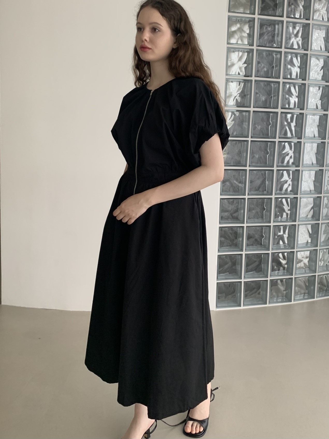 品名:신상)팜므 밴딩 오픈집업 원피스 ◎※☞颜色:베이지, 블랙 ◎※☞尺寸:FREE ◎※☞材质:纯棉 100%