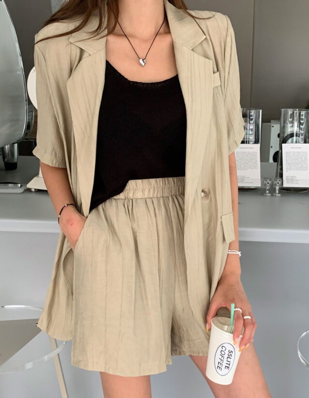 品名:슬릭자켓set ◎※☞颜色:베이지, 블랙, 화이트 ◎※☞尺寸:FREE ◎※☞材质:尼龙 68%,聚酯 32% ◎※☞注意事项:只能干洗,只能手洗,不能手洗,机洗,不能使用漂白剂,不能烘干,不能熨烫,不能曲折