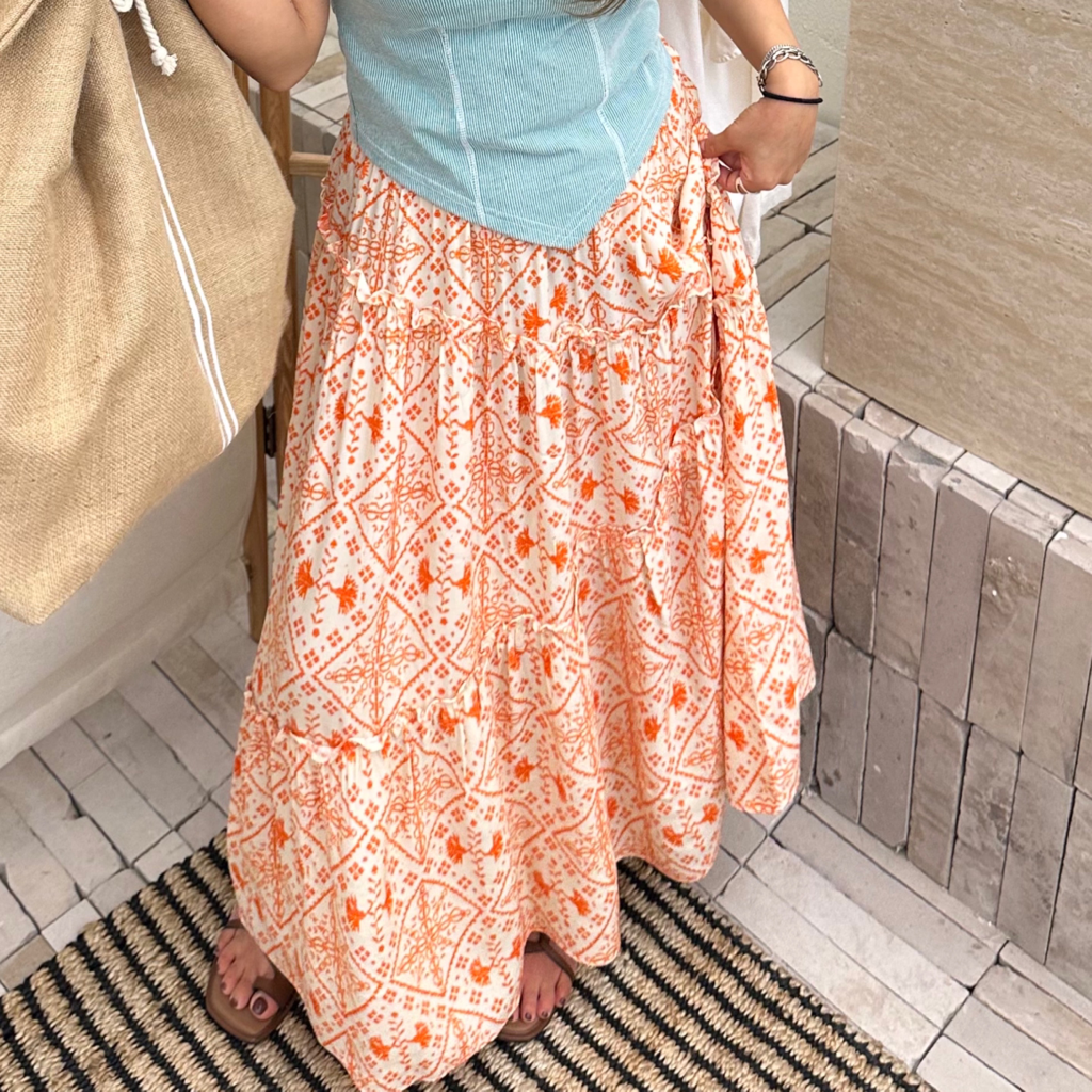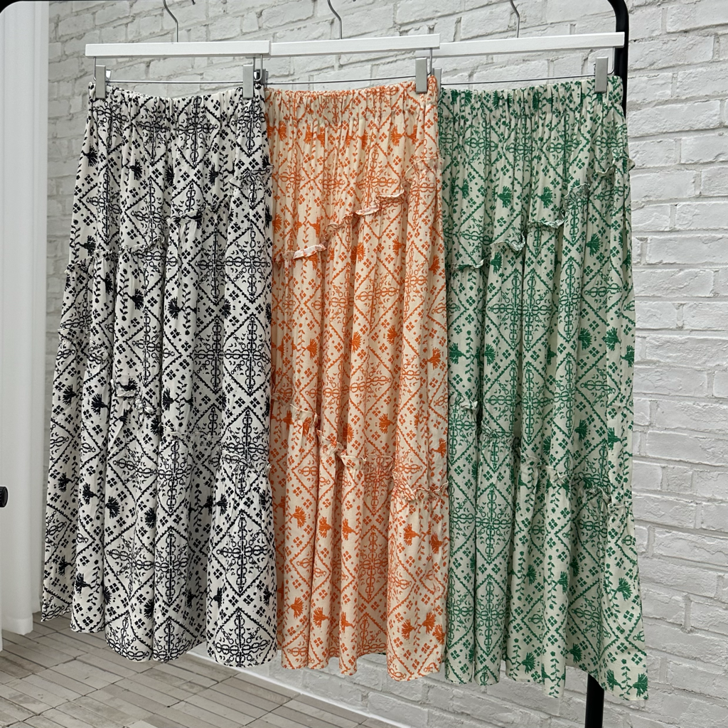 品名:프린팅 프릴 캉캉 롱 스커트 (바캉스 휴가룩) ◎※☞颜色:그린, 블랙, 오렌지 ◎※☞尺寸:FREE ◎※☞材质:人造纤维 100% ◎※☞注意事项:只能干洗,只能手洗,不能手洗,机洗,不能使用漂白剂,不能烘干,不能熨烫,不能曲折