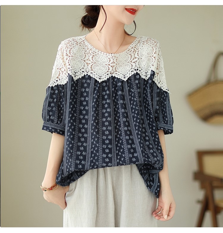 品名:레이스 프린트 아사면 블라우스 ◎※☞颜色:네이비 ◎※☞尺寸:FREE ◎※☞材质:纯棉 100% ◎※☞注意事项:只能干洗,只能手洗,不能手洗,机洗,不能使用漂白剂,不能烘干,不能熨烫,不能曲折