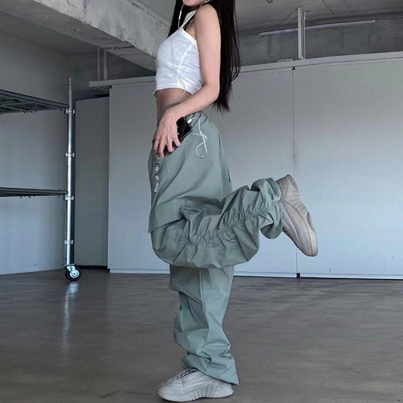 品名:카고 셔링 스트링 트랙 팬츠y2k ◎※☞颜色:그레이 ◎※☞尺寸:M, S ◎※☞材质:聚酯 50%,尼龙 50% 翻译