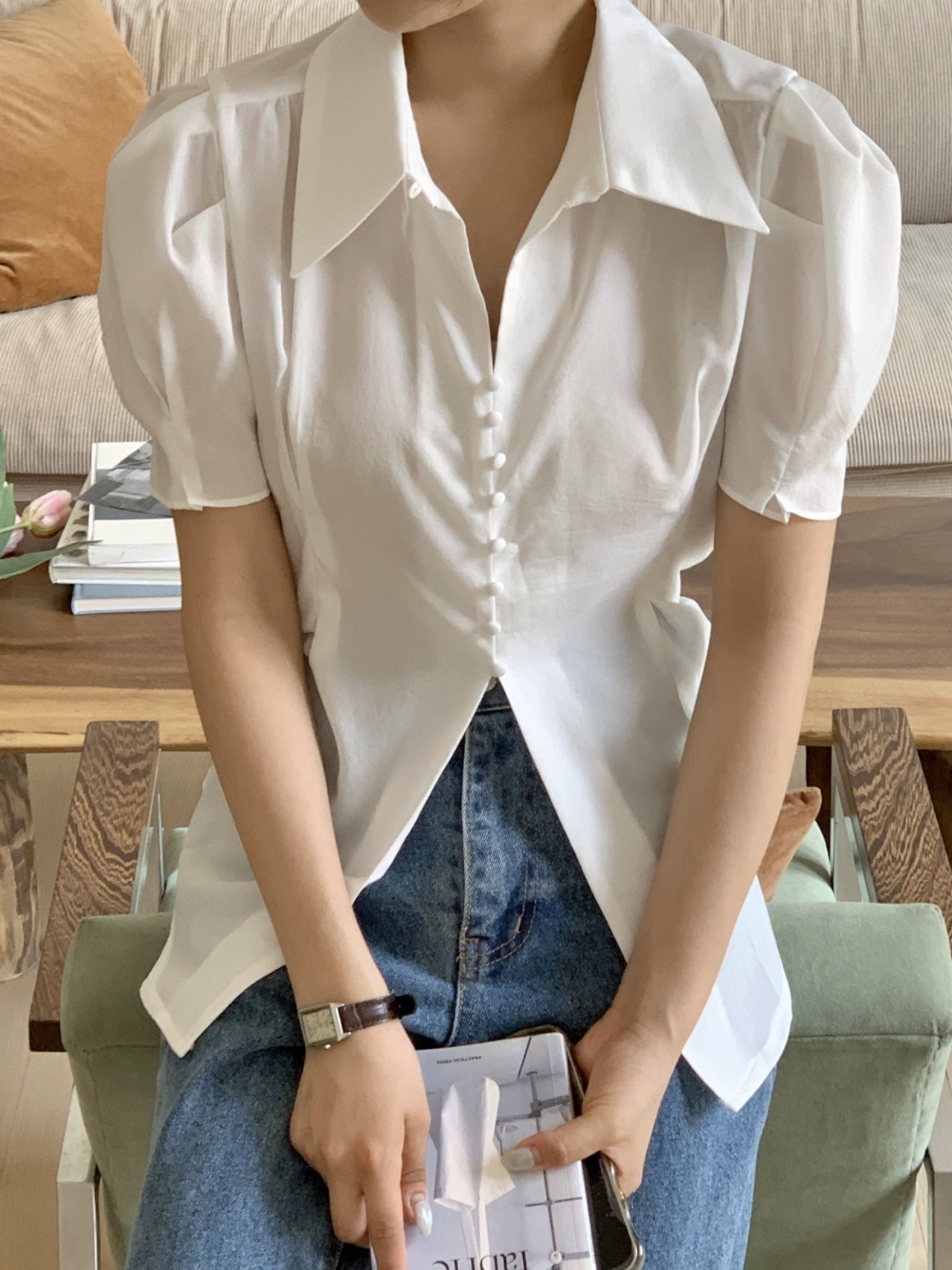 品名:나나블라우스 (퍼프 무지 카라 트임 핀탁 트임 신상 ) ◎※☞颜色:블랙, 화이트 ◎※☞尺寸:FREE ◎※☞材质:聚酯 100% ◎※☞注意事项:只能干洗,只能手洗,不能手洗,机洗,不能使用漂白剂,不能烘干,不能熨烫,不能曲折