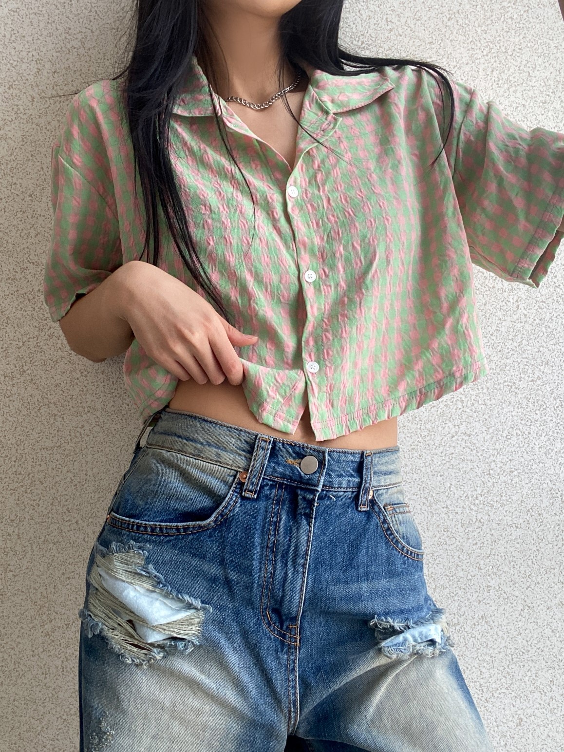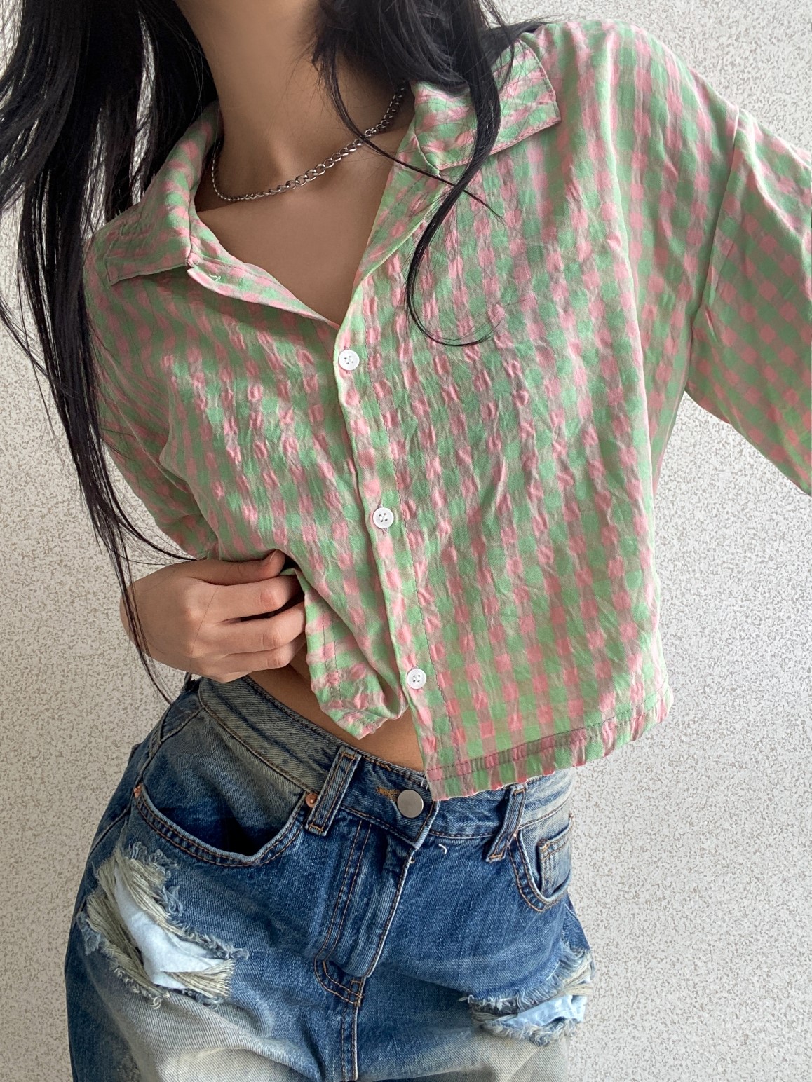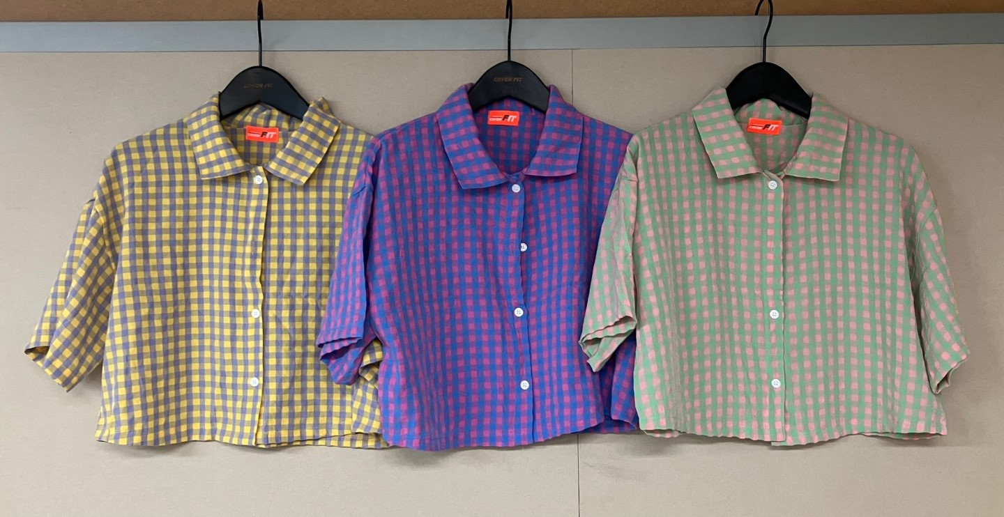品名:CF319 크롭체크셔츠 ◎※☞颜色:민트, 블루, 옐로우 ◎※☞尺寸:FREE ◎※☞材质:纯棉 100% ◎※☞注意事项:只能干洗,只能手洗,不能手洗,机洗,不能使用漂白剂,不能烘干,不能熨烫,不能曲折