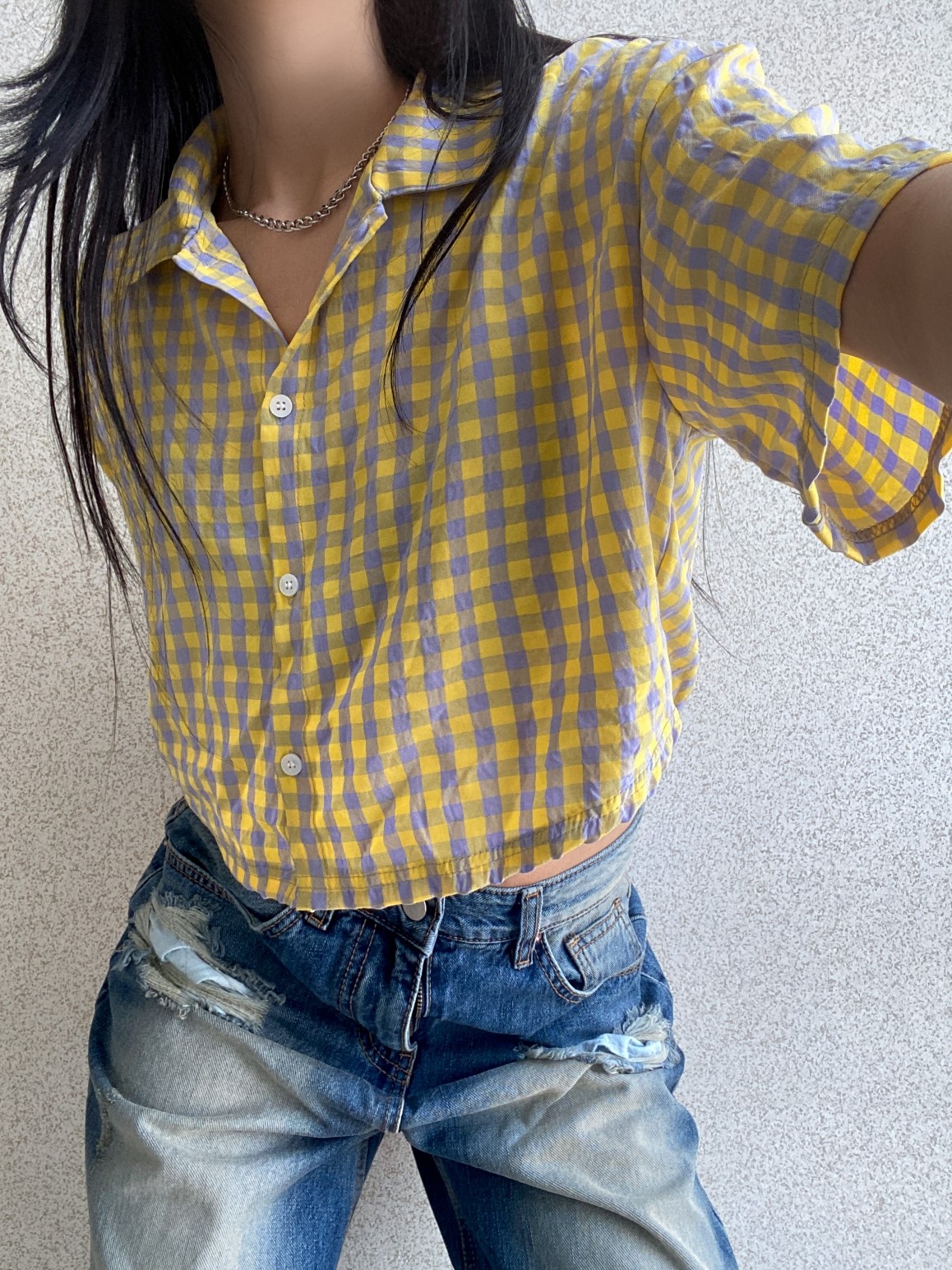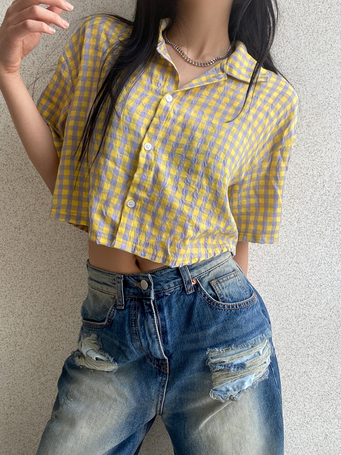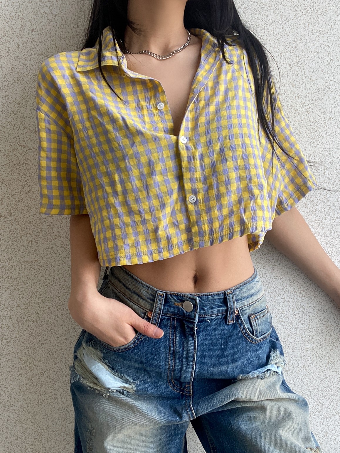品名:CF319 크롭체크셔츠 ◎※☞颜色:민트, 블루, 옐로우 ◎※☞尺寸:FREE ◎※☞材质:纯棉 100% ◎※☞注意事项:只能干洗,只能手洗,不能手洗,机洗,不能使用漂白剂,不能烘干,不能熨烫,不能曲折