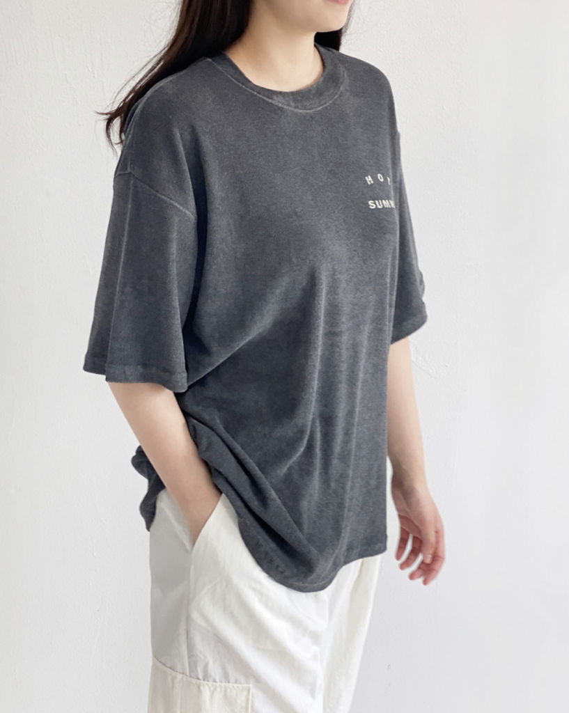 品名:피그먼트 테리 타올 핫썸머 반팔티 ◎※☞颜色:베이지, 인디고, 차콜 ◎※☞尺寸:FREE ◎※☞材质:纯棉 100% ◎※☞注意事项:只能干洗,只能手洗,不能手洗,机洗,不能使用漂白剂,不能烘干,不能熨烫,不能曲折