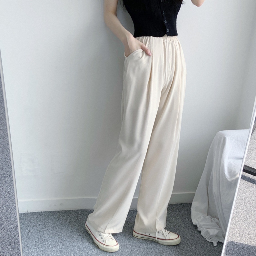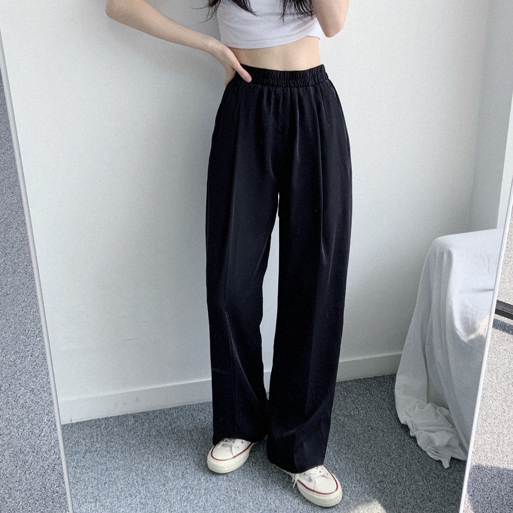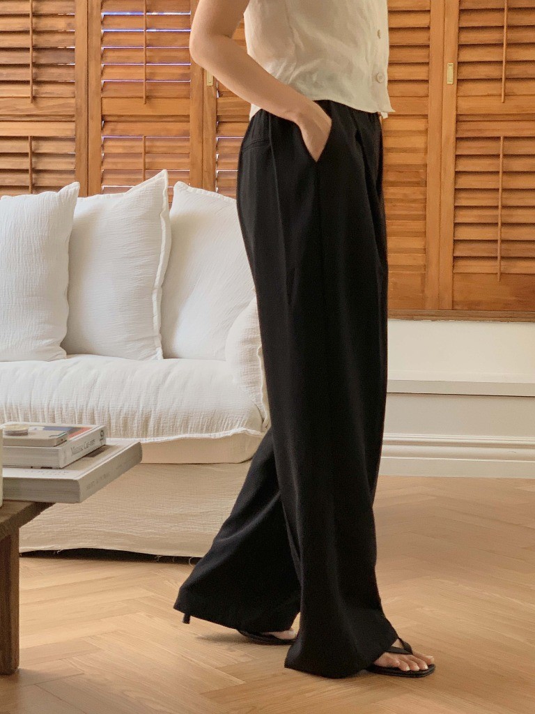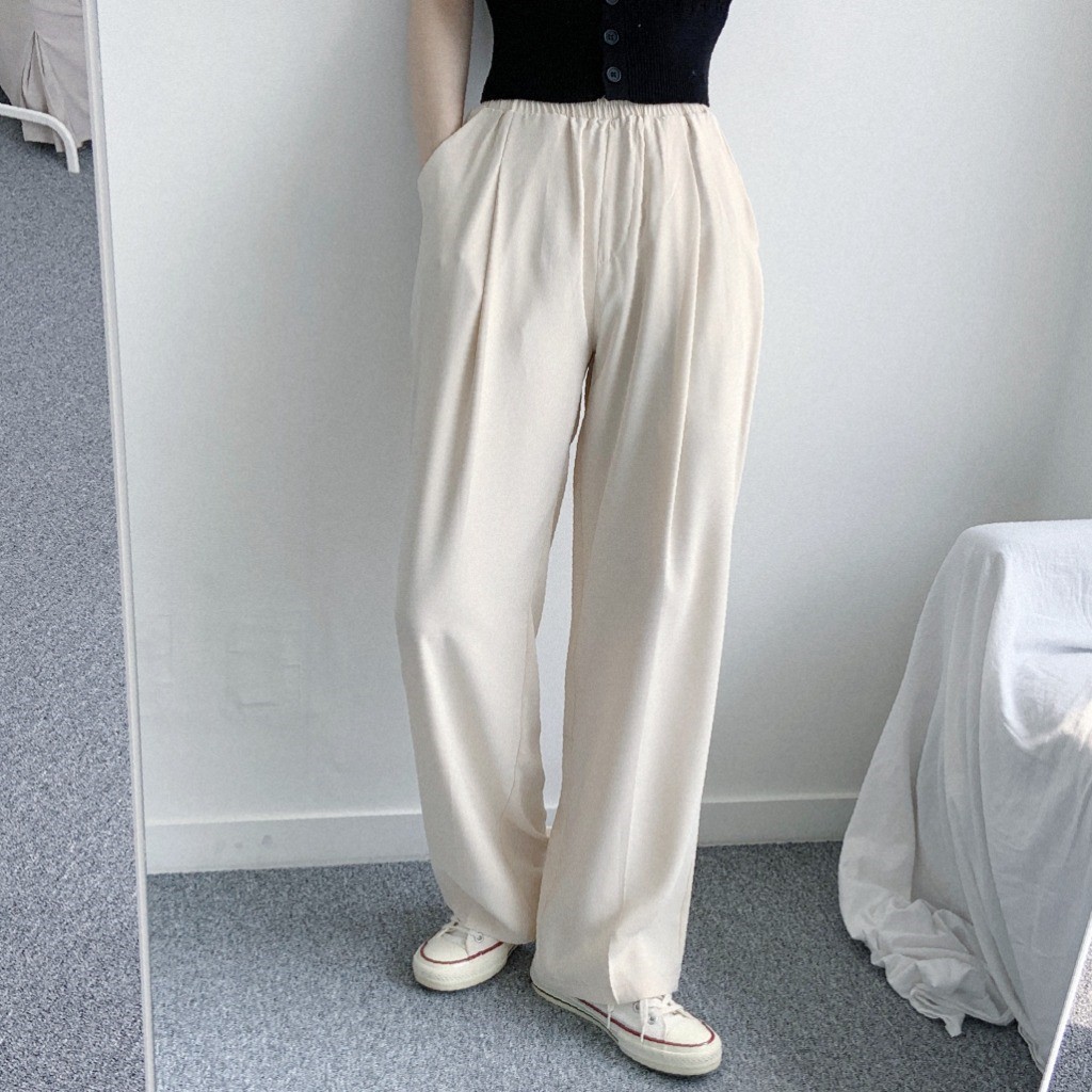 品名:쿨링팬츠PT 찰랑찰랑 와이드 팬츠 편안한 착용감 멋스러운 핏 ◎※☞颜色:블랙, 크림 ◎※☞尺寸:FREE ◎※☞材质:聚酯 100%