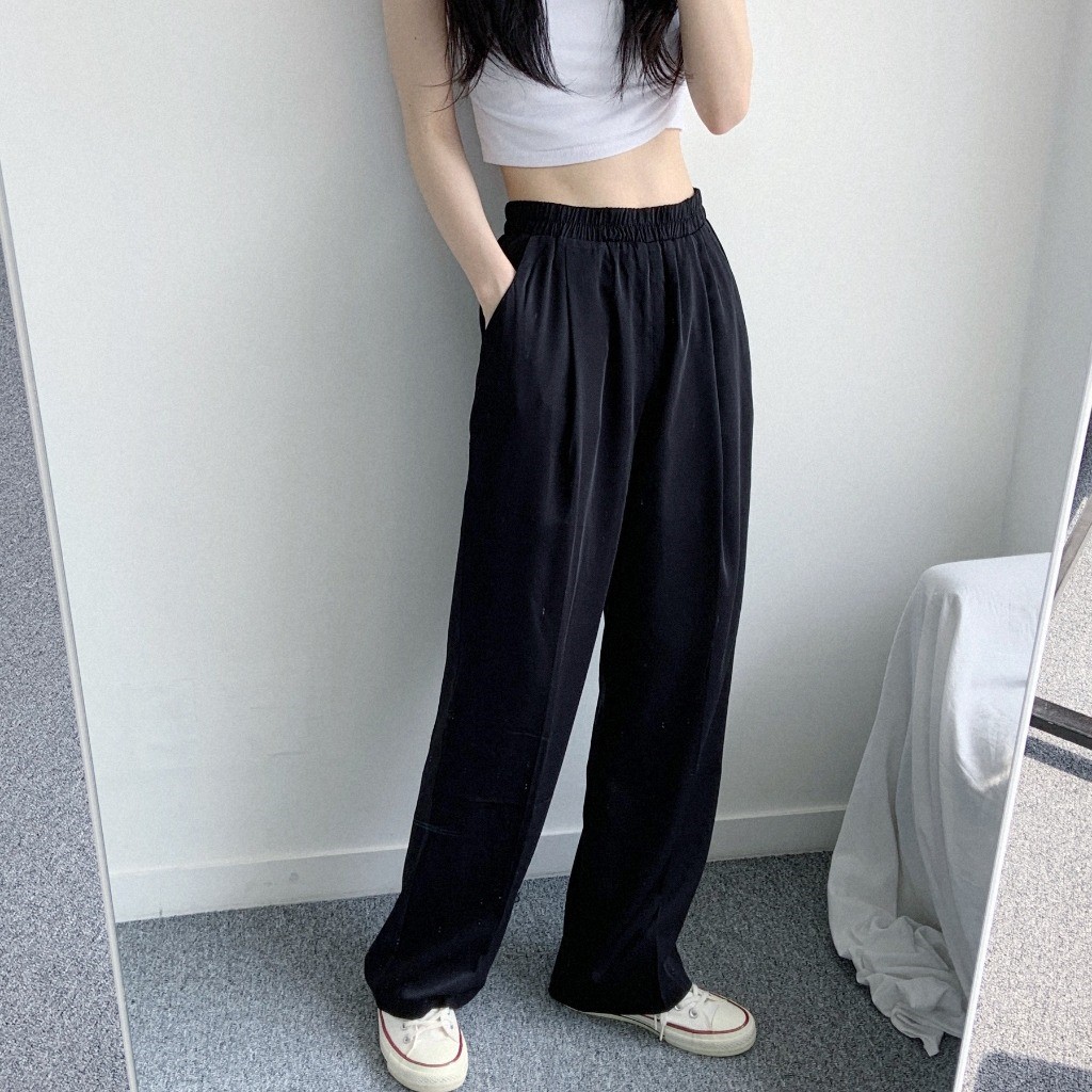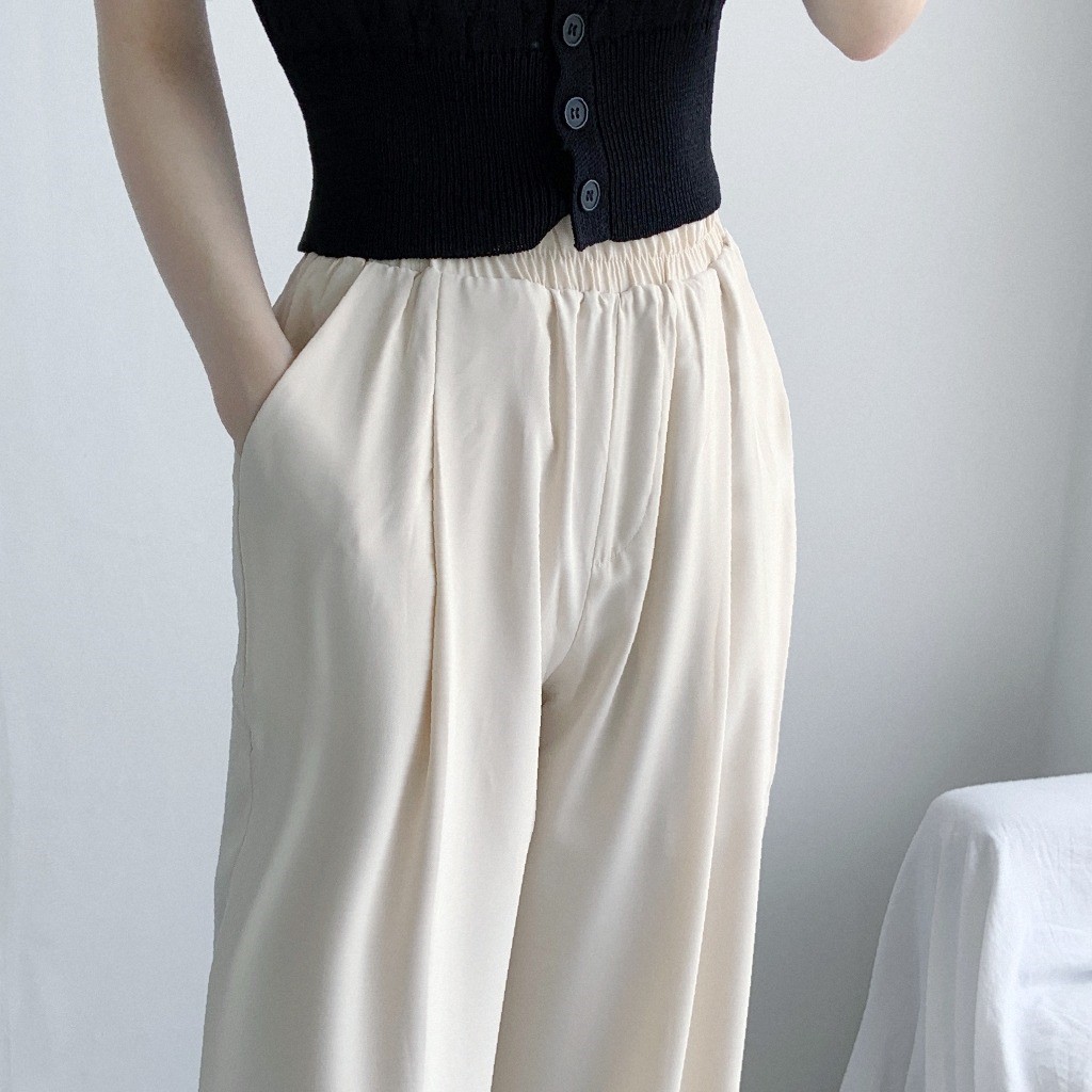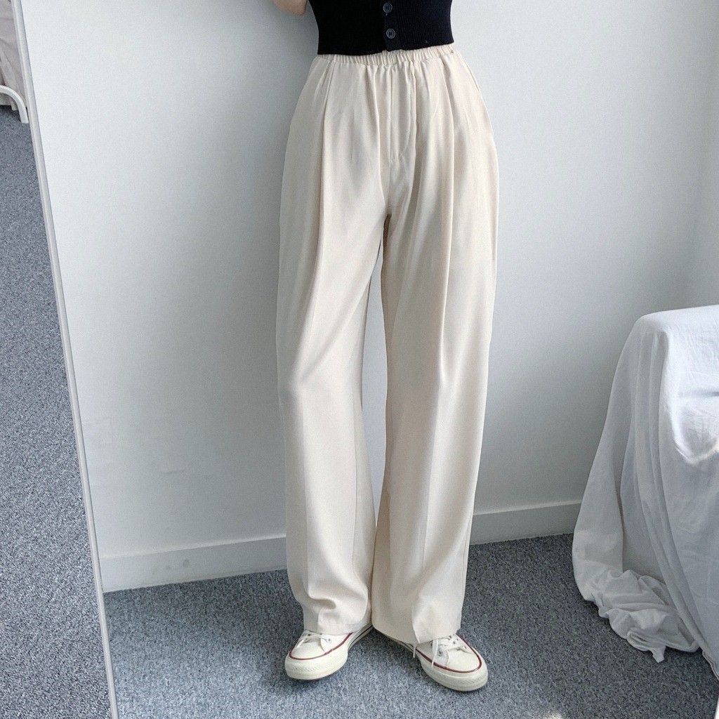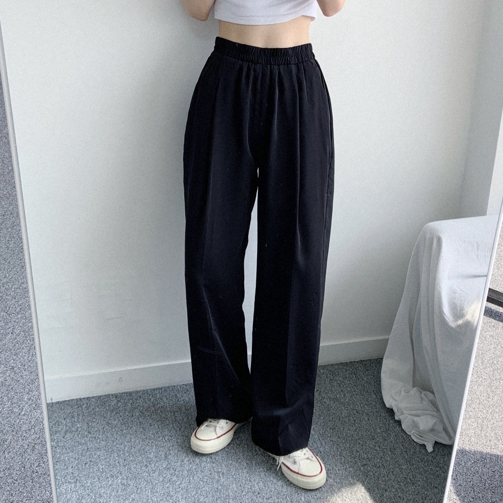 品名:쿨링팬츠PT 찰랑찰랑 와이드 팬츠 편안한 착용감 멋스러운 핏 ◎※☞颜色:블랙, 크림 ◎※☞尺寸:FREE ◎※☞材质:聚酯 100%