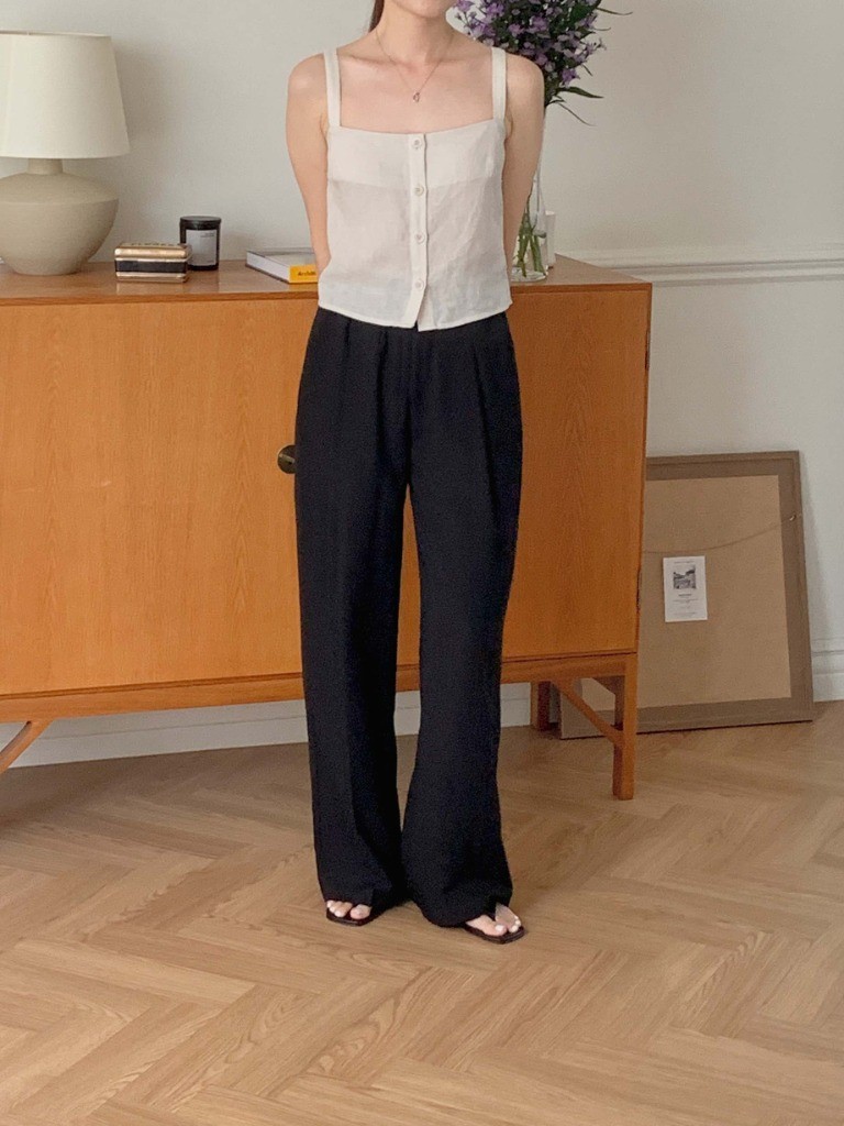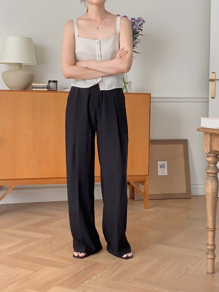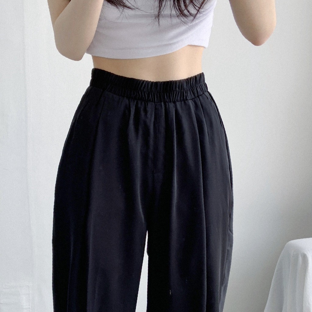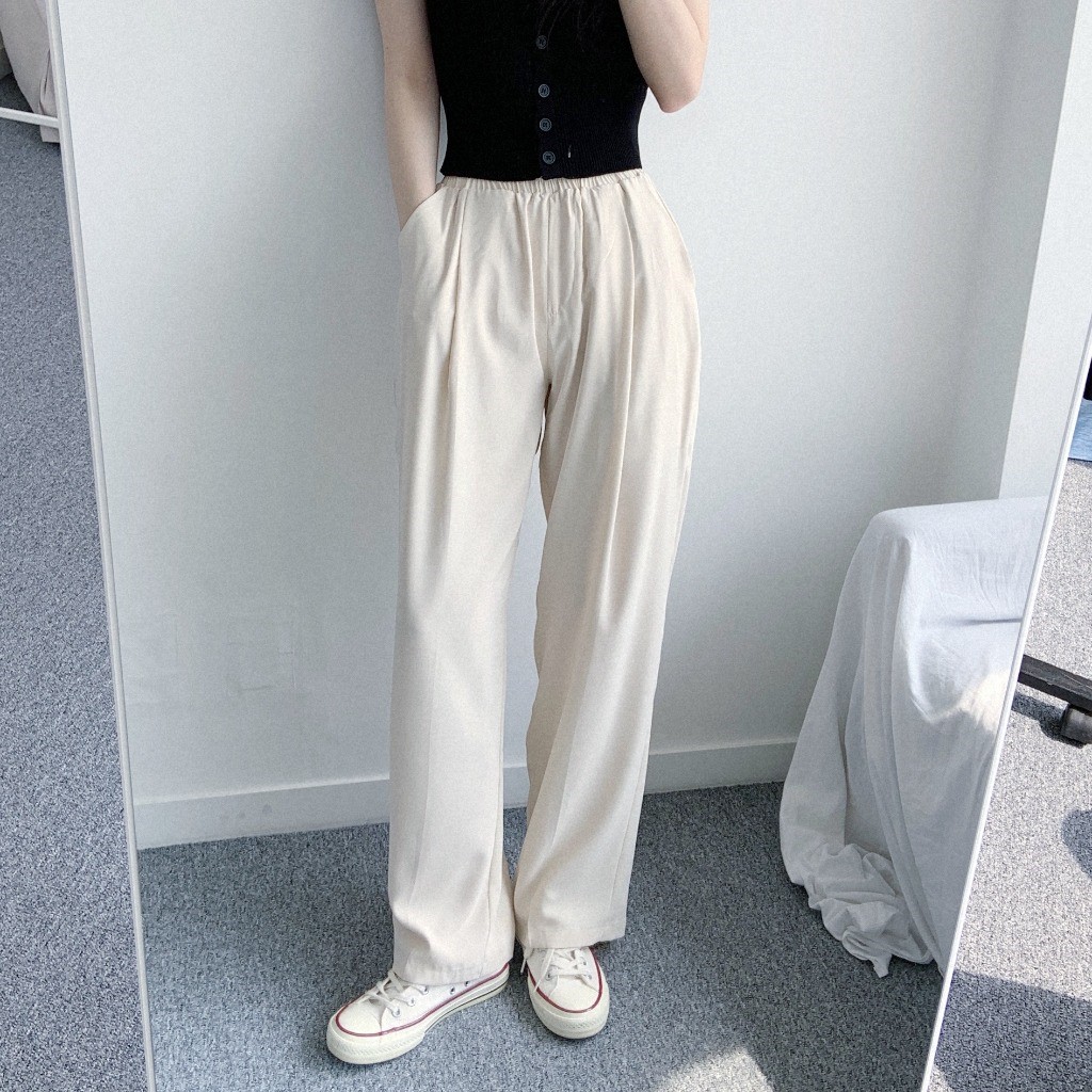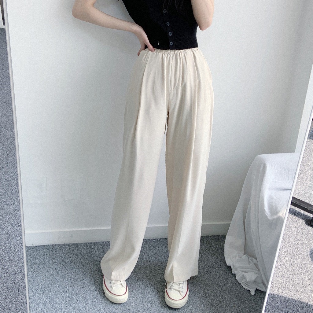 品名:쿨링팬츠PT 찰랑찰랑 와이드 팬츠 편안한 착용감 멋스러운 핏 ◎※☞颜色:블랙, 크림 ◎※☞尺寸:FREE ◎※☞材质:聚酯 100%