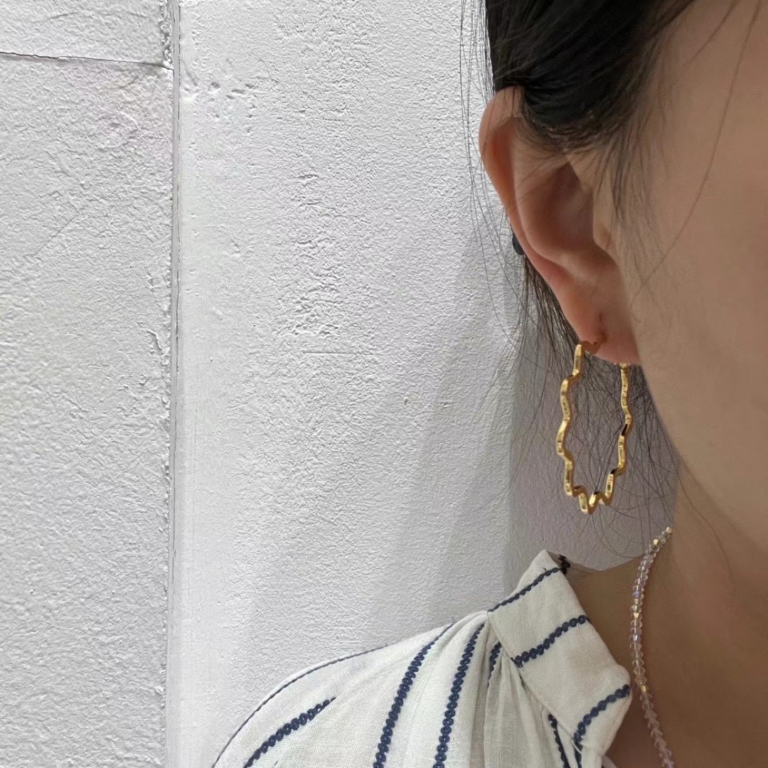 质感镀金 4cm直径波浪大耳扣 金银两色 翻译