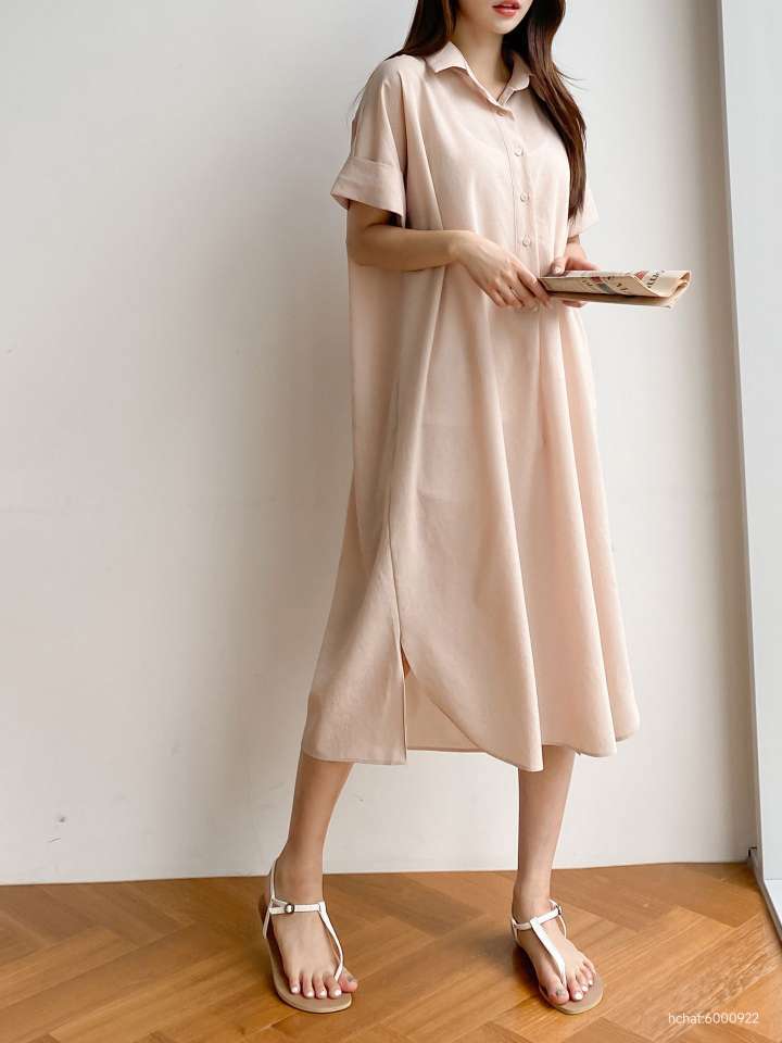 고급스러운 분위기를 연출할수있는 셔츠원피스~ 여름에 시원하게 입을수있는 폴리혼방소재로 럭셔리~ 소매는 카브라 디테일~ 몸통과 소매의 구분없이 살짝 가오리 스타일로 사이즈구애 없는 가슴단면으로 이거 하나만 간편히 입어도 럭셔리분위기