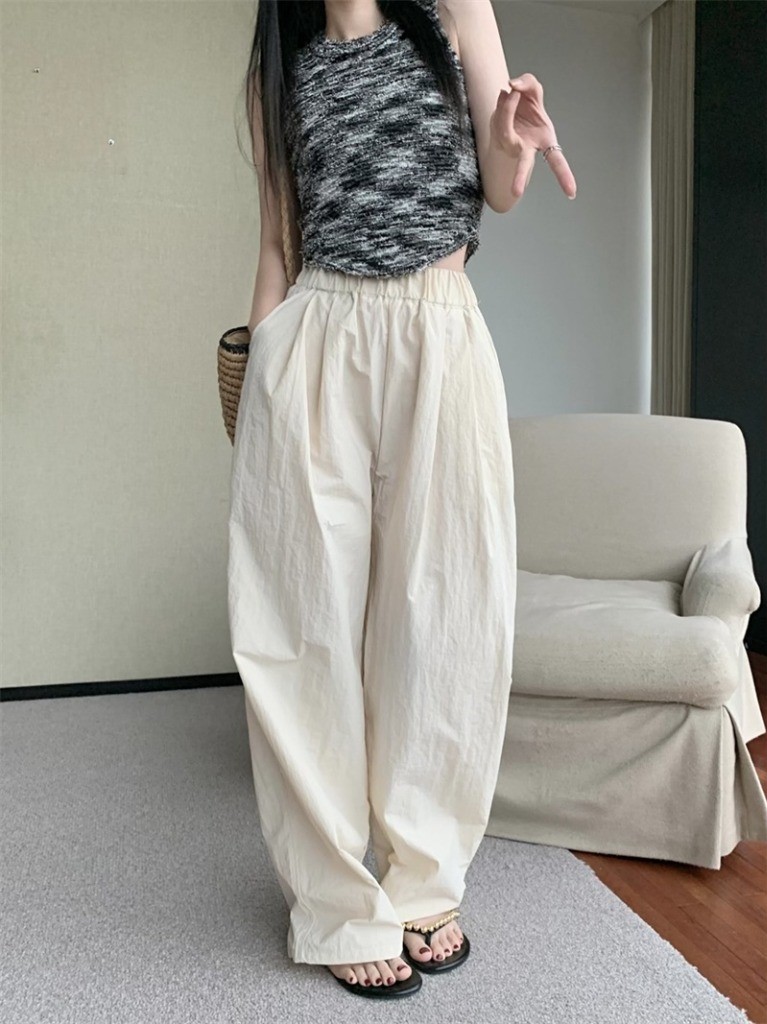 品名:나일론 바스락 와이드 팬츠 ◎※☞颜色:베이지, 블랙, 아이보리, 차콜, 카키, 핑크 ◎※☞尺寸:FREE ◎※☞材质:纯棉 50%,聚酯 50%