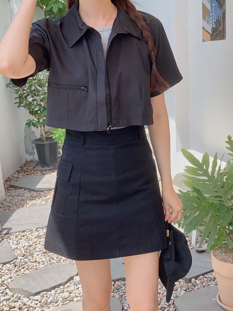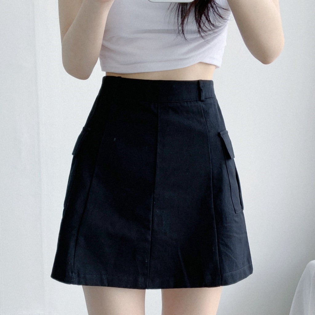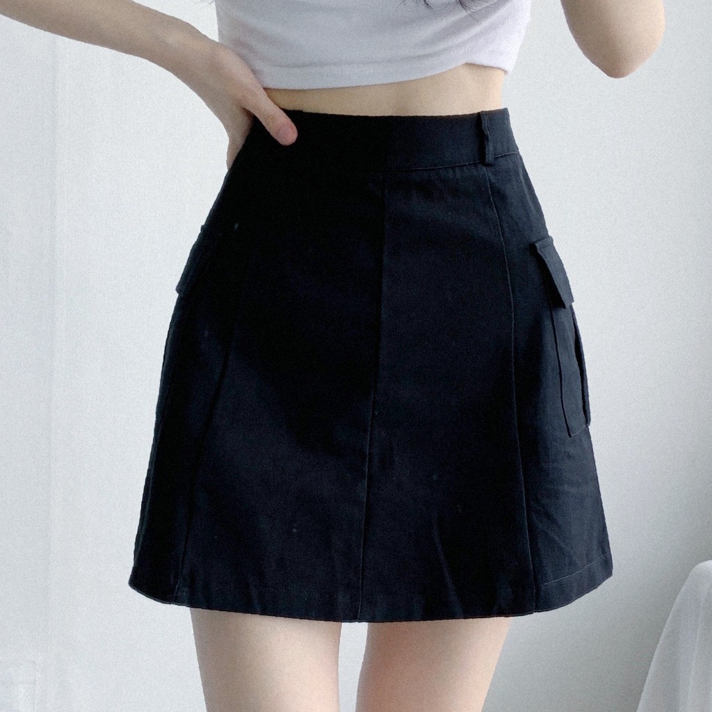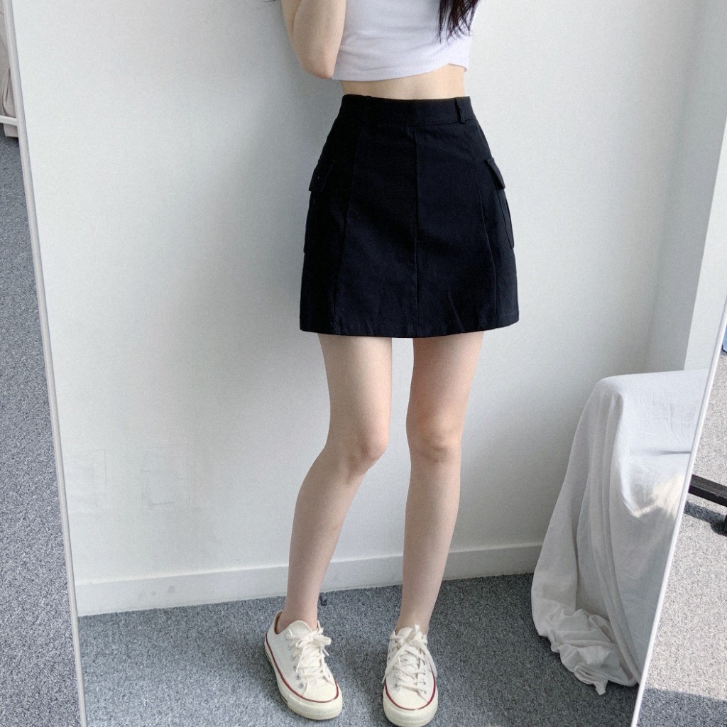 品名:멜로카고미니SK 코튼 포켓 사이즈선택 미니스커트 ◎※☞颜色:블랙 ◎※☞尺寸:L, M, S ◎※☞材质:纯棉 100% 翻译