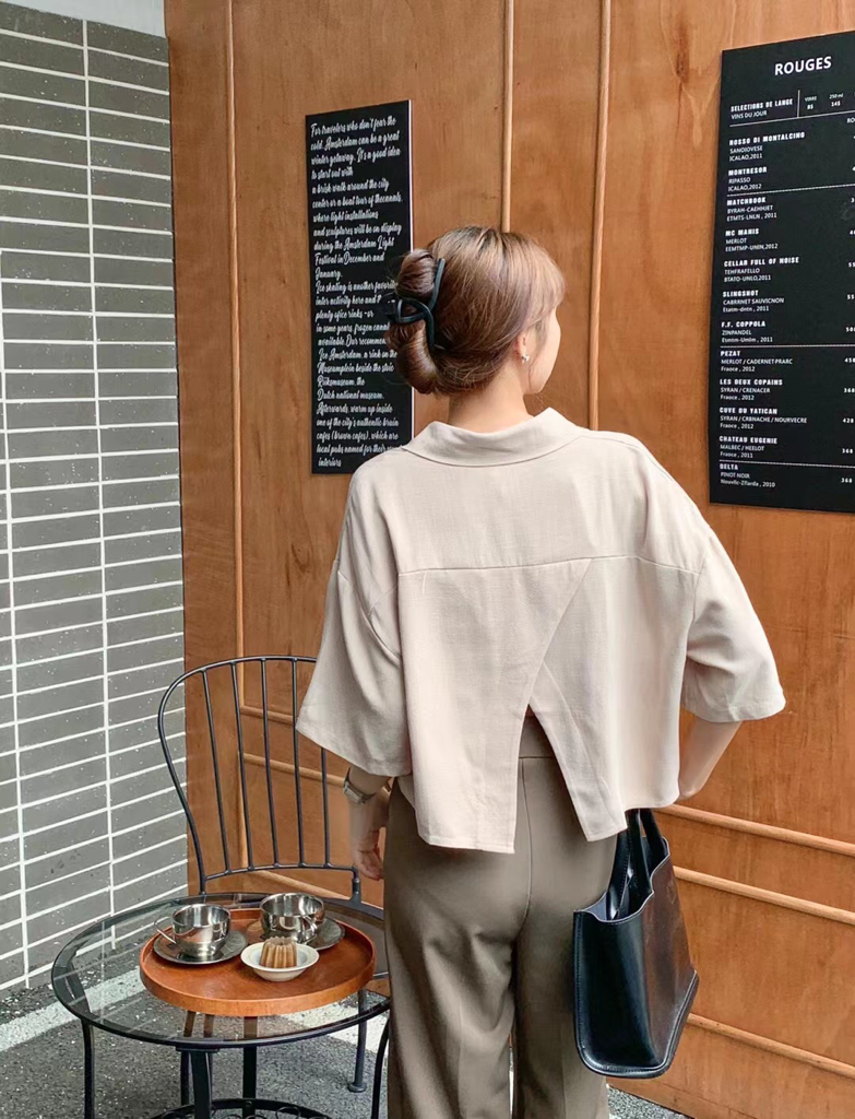 品名:신상)린넨 뒷트임 반팔셔츠 ◎※☞颜色:민트, 베이지, 보라, 블랙, 화이트 ◎※☞尺寸:FREE ◎※☞材质:纯棉 75%,聚酯 25%