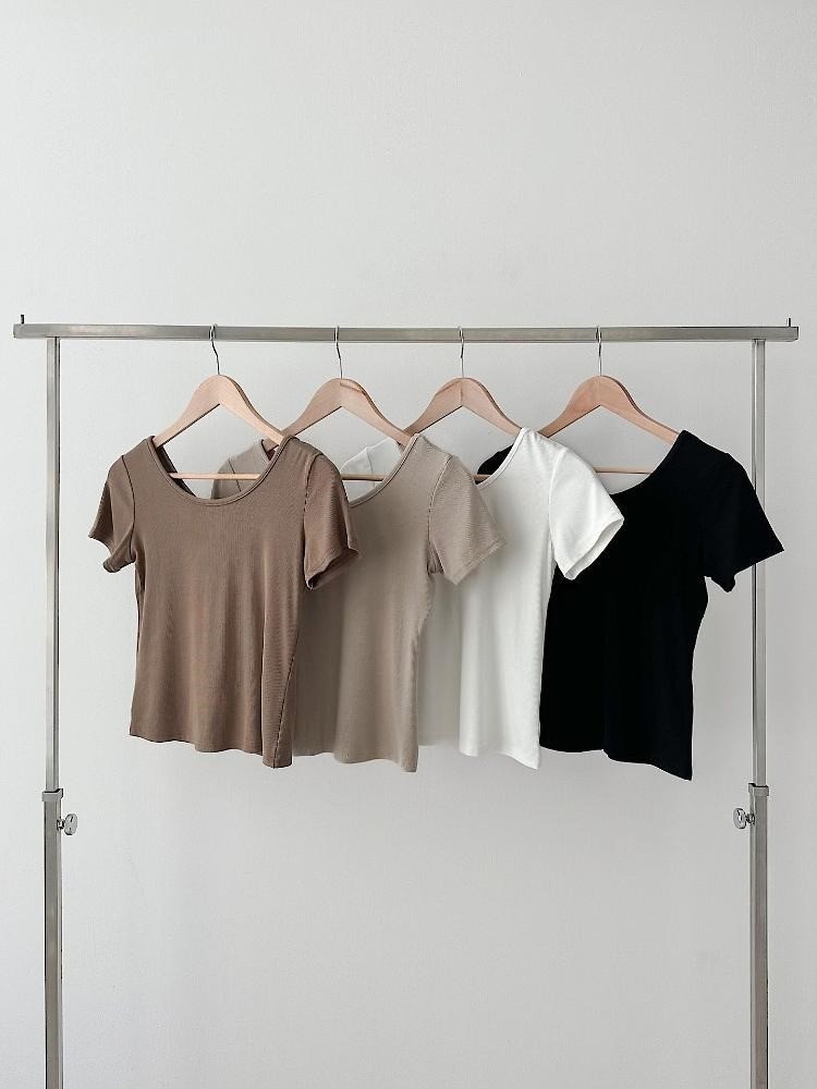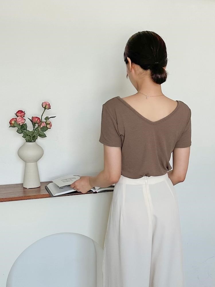 品名:앞뒤 UV 네크라인 티셔츠여성의류 ◎※☞颜色:라이트브라운, 브라운, 블랙, 화이트 ◎※☞尺寸:FREE ◎※☞材质:도매문의 100%