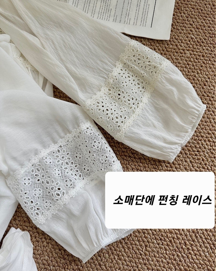 品名:브이넥 펀칭레이스 블라우스 ◎※☞颜色:아이보리, 화이트 ◎※☞尺寸:FREE ◎※☞材质:纯棉 100% ◎※☞注意事项:只能干洗,只能手洗,不能手洗,机洗,不能使用漂白剂,不能烘干,不能熨烫,不能曲折