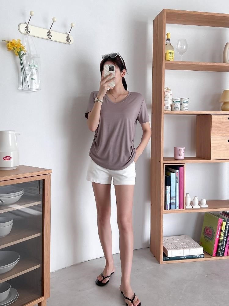 品名:샤브 티셔츠 ◎※☞颜色:베이지, 브라운, 블랙, 화이트 ◎※☞尺寸:FREE ◎※☞材质:면 65%,폴리에스테르 30%,스판 5%