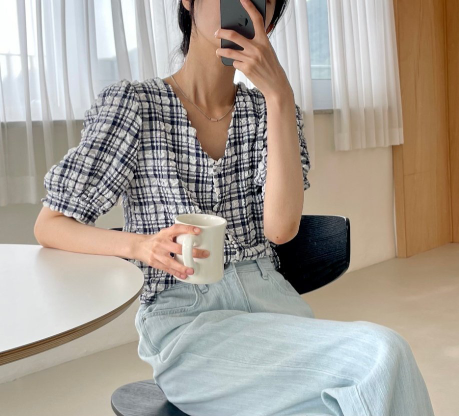 品名:베베체크BL (베베체크블라우스,셔링블라우스,크롭BL,브이넥블라우스,V넥) ◎※☞颜色:네이비, 베이지 ◎※☞尺寸:FREE ◎※☞材质:聚酯 100%