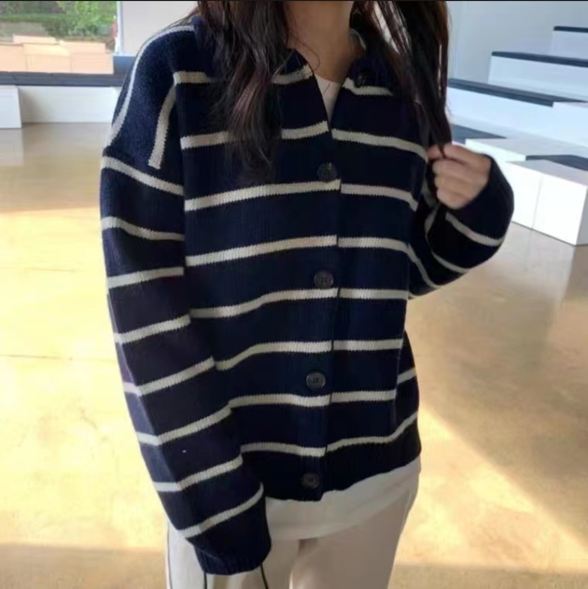品名:페이크단가라 (간절기 가디건 니트 긴팔 단가라가디건 루즈핏 가을) ◎※☞颜色:네이비, 아이보리 ◎※☞尺寸:FREE ◎※☞材质:腈纶 100% ◎※☞注意事项:只能干洗,只能手洗,不能手洗,机洗,不能使用漂白剂,不能烘干,不能熨烫,不能曲折