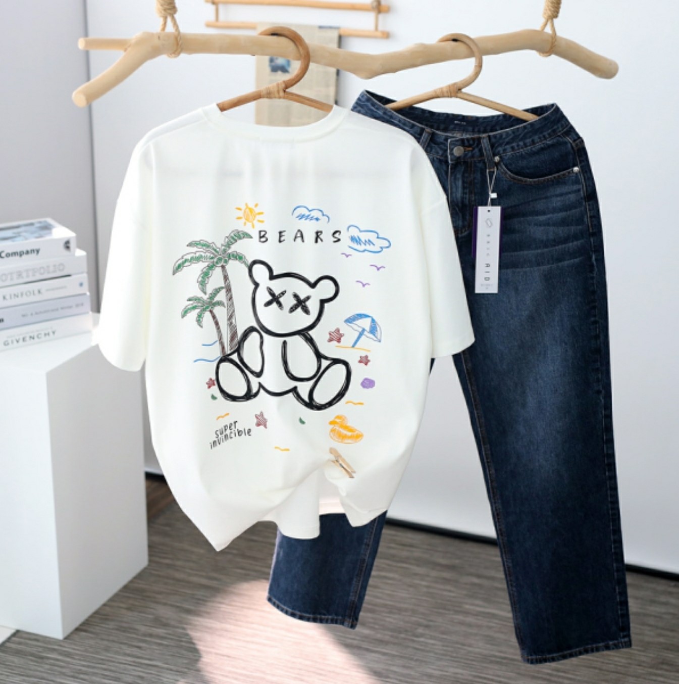 品名:쿨분또베어반팔티 ◎※☞颜色:그레이, 베이지, 블랙, 아이보리 ◎※☞尺寸:FREE ◎※☞材质:纯棉 45%,聚酯 55%