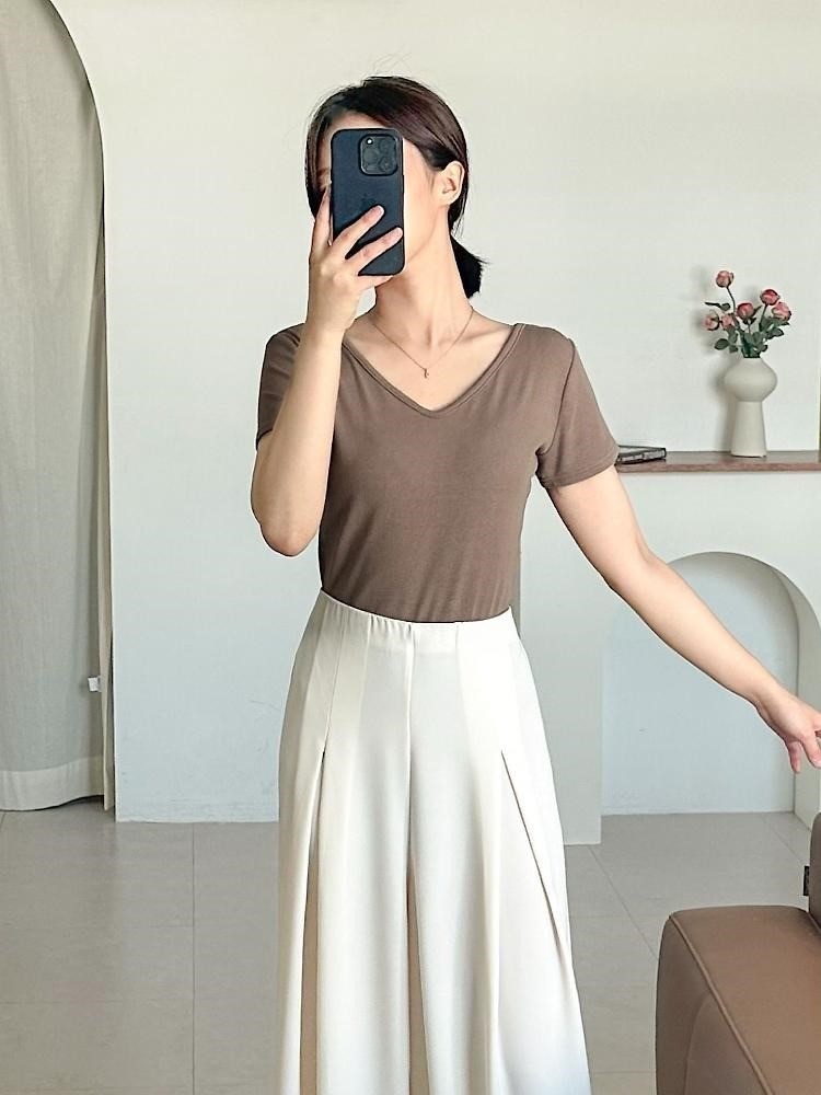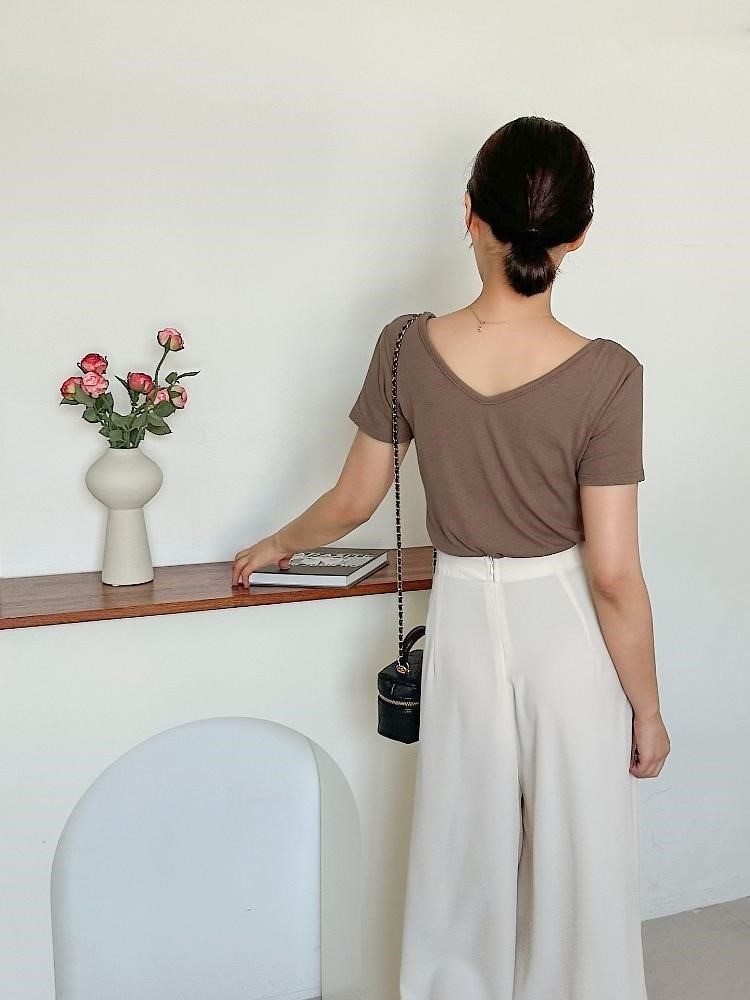 品名:앞뒤 UV 네크라인 티셔츠여성의류 ◎※☞颜色:라이트브라운, 브라운, 블랙, 화이트 ◎※☞尺寸:FREE ◎※☞材质:도매문의 100%