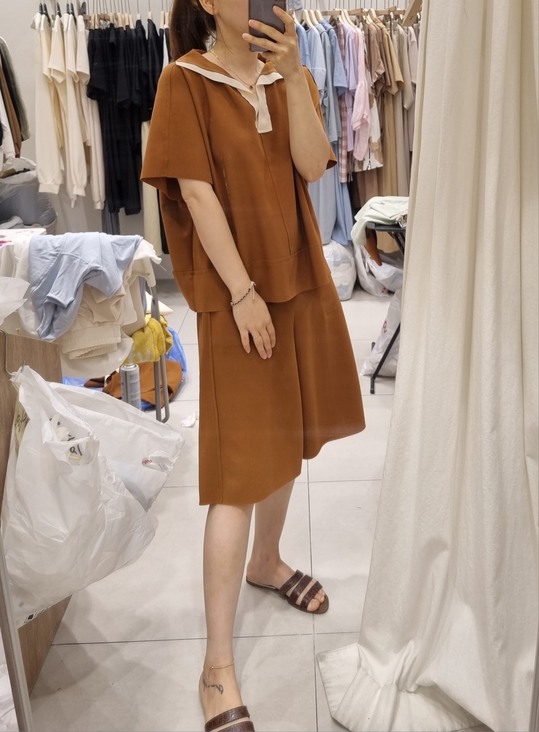 品名:트윈하프팬츠 ◎※☞颜色:브라운, 블랙, 아이보리 ◎※☞尺寸:FREE ◎※☞材质:스판 5%,聚酯 95%