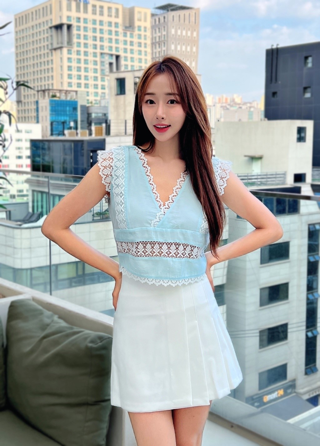 品名:쥴리크롭BL ◎※☞颜色:소라, 아이보리 ◎※☞尺寸:FREE ◎※☞材质:聚酯 100%