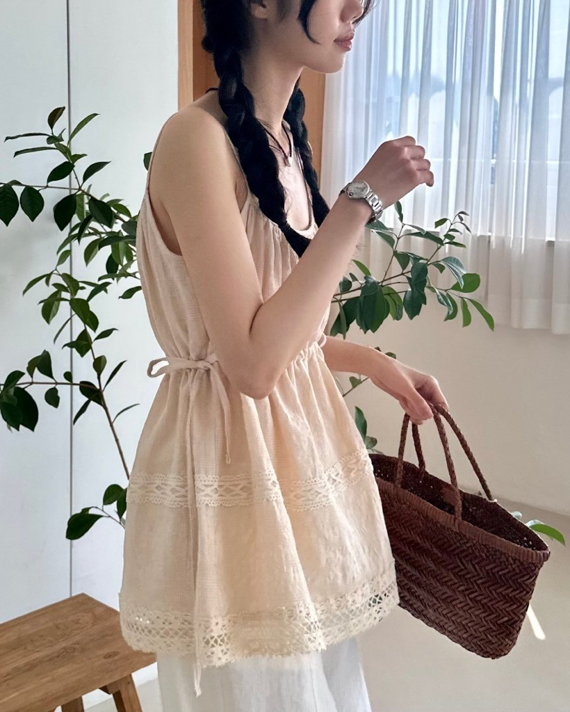 品名:쿠쿠레스n (끈나시,레이스나시,레이스블라우스,셔링나시,리본,레이스n,이너 ◎※☞颜色:베이지, 아이보리 ◎※☞尺寸:FREE ◎※☞材质:纯棉 100%