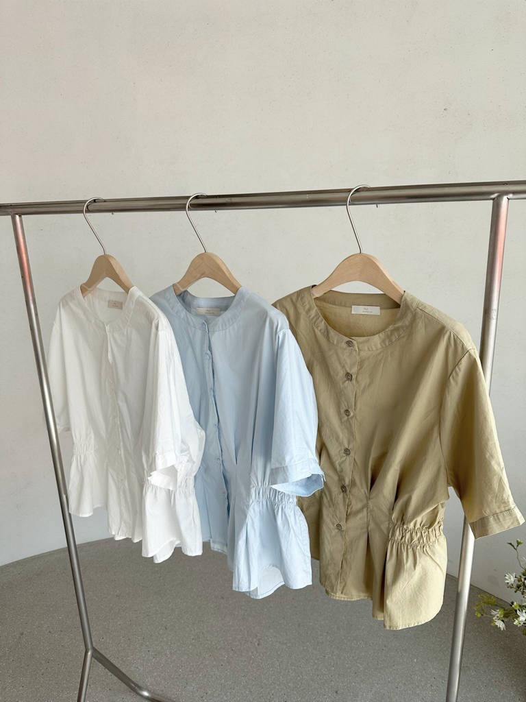 品名:웨이트 라운드 반팔 밴딩 핀탁 블라우스 BL ◎※☞颜色:S블루, 아이, 올리브 ◎※☞尺寸:FREE ◎※☞材质:纯棉 100% ◎※☞注意事项:只能干洗,只能手洗,不能手洗,机洗,不能使用漂白剂,不能烘干,不能熨烫,不能曲折
