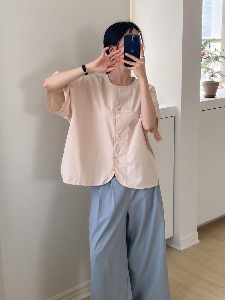 品名:네모단작블라우스 ◎※☞颜色:블랙, 아이보리, 연핑크, 화이트 ◎※☞尺寸:FREE ◎※☞材质:면 100%
