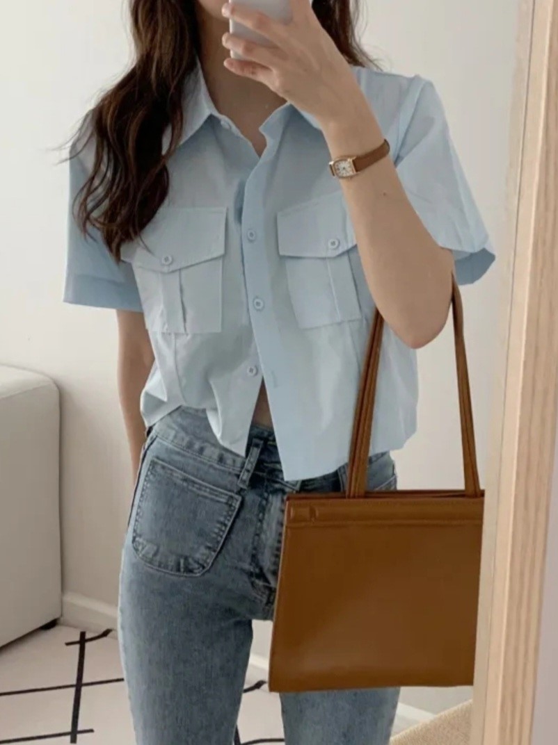 品名:투포켓크롭셔츠 ◎※☞颜色:소라, 아이보리 ◎※☞尺寸:FREE ◎※☞材质:纯棉 100% ◎※☞注意事项:只能干洗,只能手洗,不能手洗,机洗,不能使用漂白剂,不能烘干,不能熨烫,不能曲折