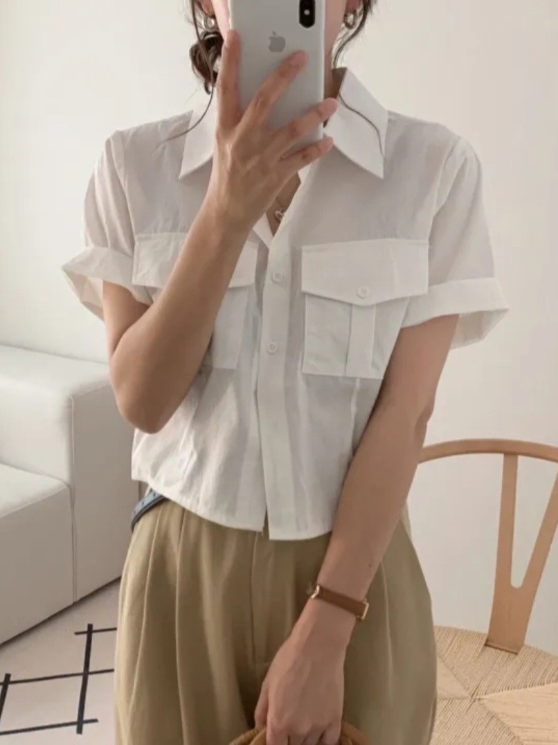 品名:투포켓크롭셔츠 ◎※☞颜色:소라, 아이보리 ◎※☞尺寸:FREE ◎※☞材质:纯棉 100% ◎※☞注意事项:只能干洗,只能手洗,不能手洗,机洗,不能使用漂白剂,不能烘干,不能熨烫,不能曲折