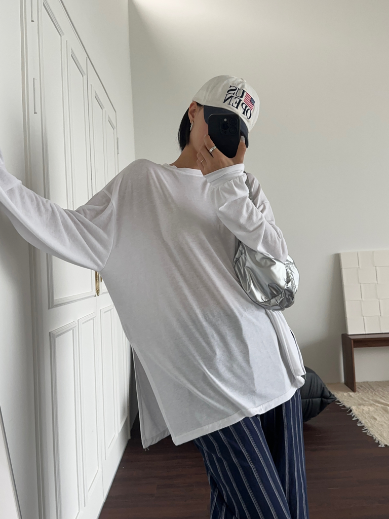 品名:쿨강연긴팔티(양옆트임)얇고 오버핏 장마때 입기좋음 ◎※☞颜色:네이비, 베이지, 블랙, 연카키, 화이트 ◎※☞尺寸:FREE ◎※☞材质:聚酯 47%,人造纤维 47%,스판 6% ◎※☞注意事项:只能干洗,只能手洗,不能手洗,机洗,不能使用漂白剂,不能烘干,不能熨烫,不能曲折