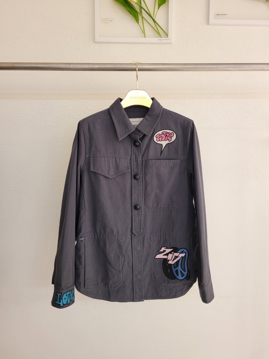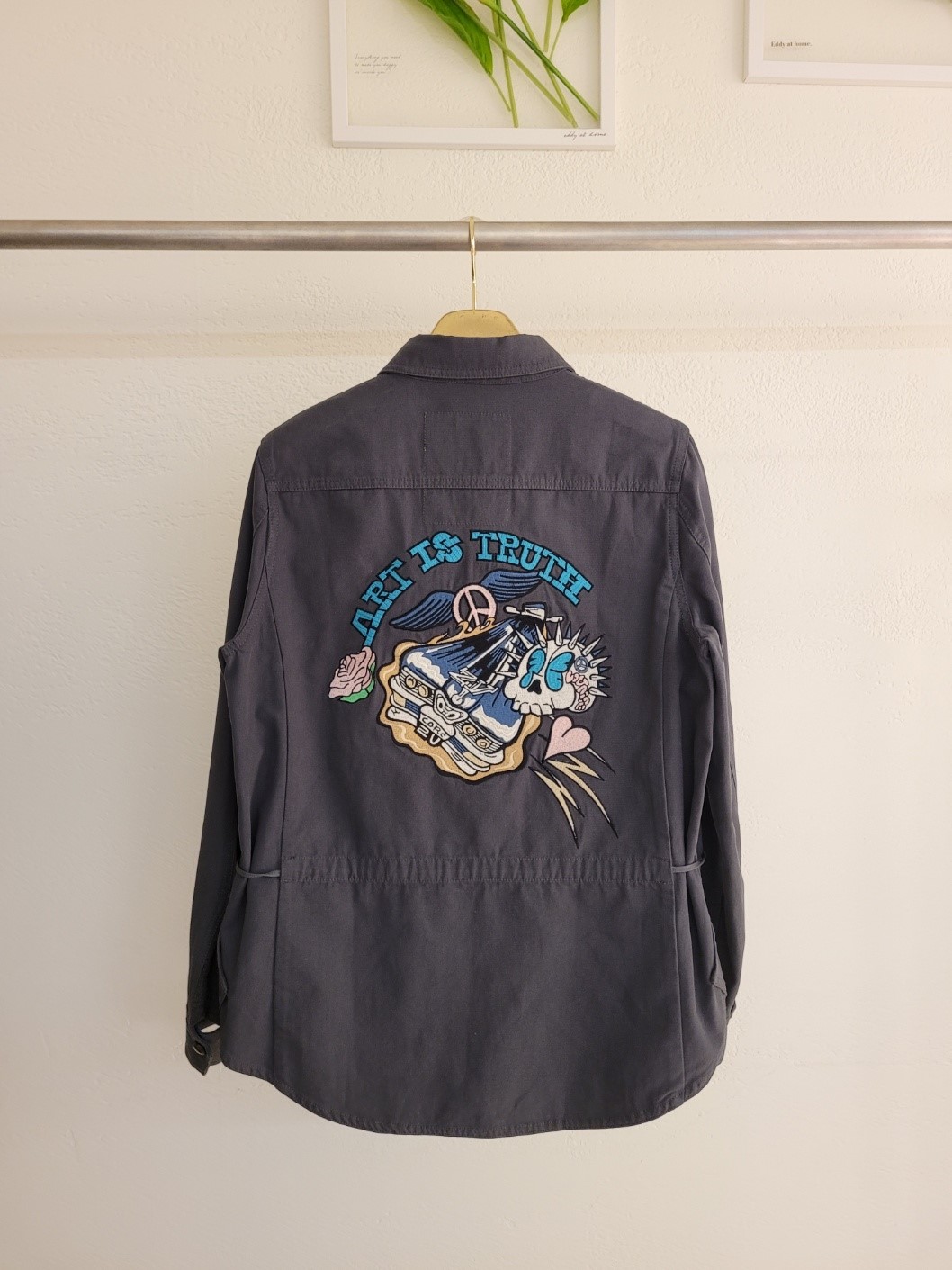 品名:Z 아트컬자수 야상 ◎※☞颜色:카키 ◎※☞尺寸:55, 66, 77 ◎※☞材质:纯棉 100%