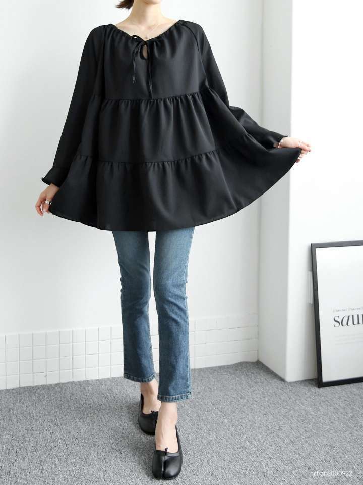 스트링 캉캉 블라우스