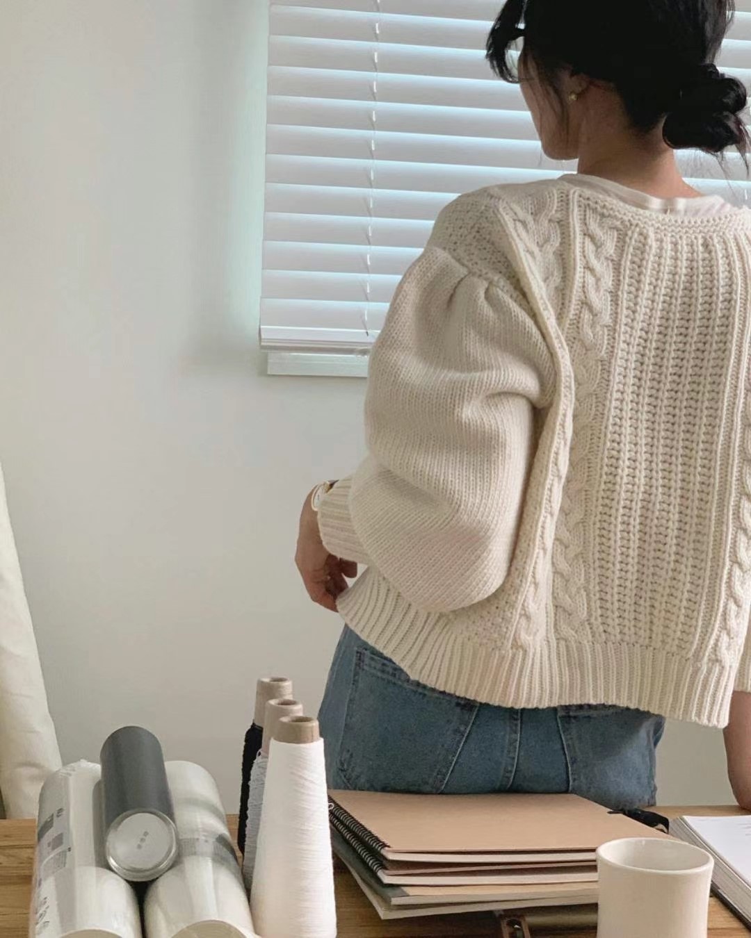 앞,뒤로 꽈배기가 들어간 끈 가디건.