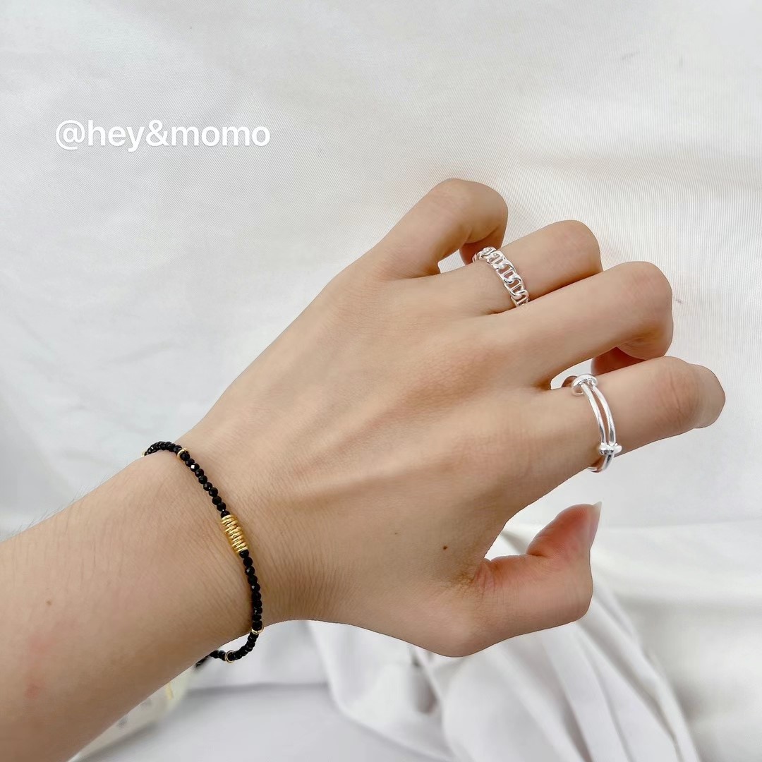 图款 ⚪️925 银 黑色天然石➕银镀金小银圈 手链 12000