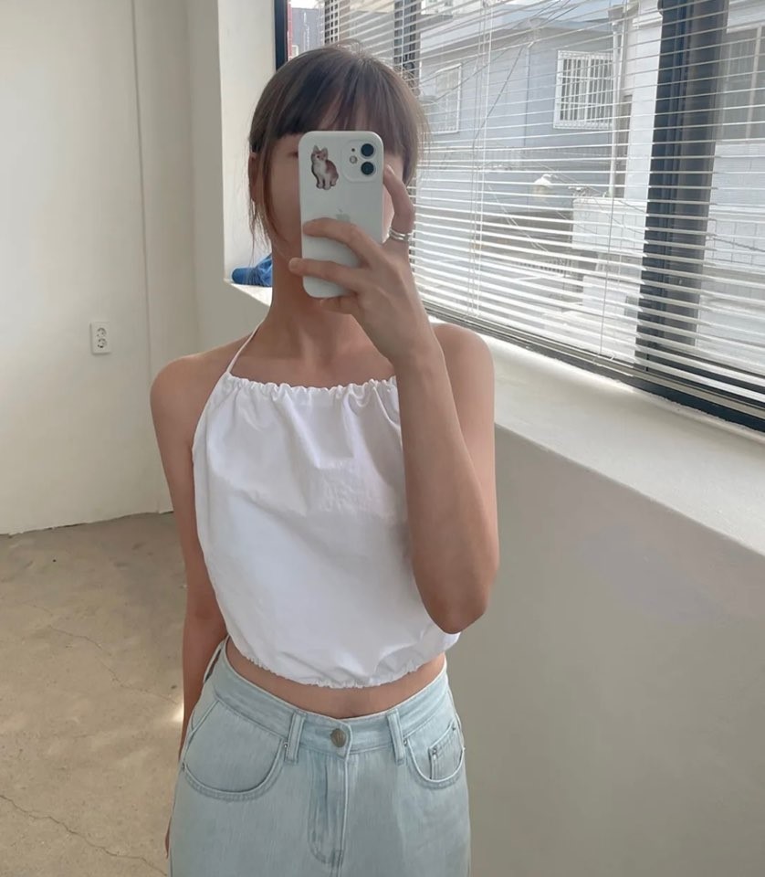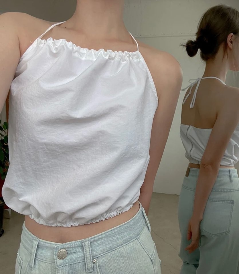 品名:홀터넥 블라우스 ◎※☞颜色:블랙, 카키, 화이트 ◎※☞尺寸:FREE ◎※☞材质:尼龙 100%