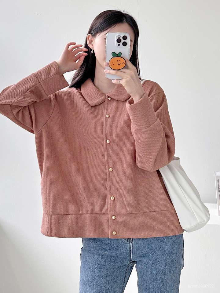 금장 단추 포인트의 가디건으로 동글 카라로 러블리하고 가볍고 편하게 자켓 처럼 코디 가능