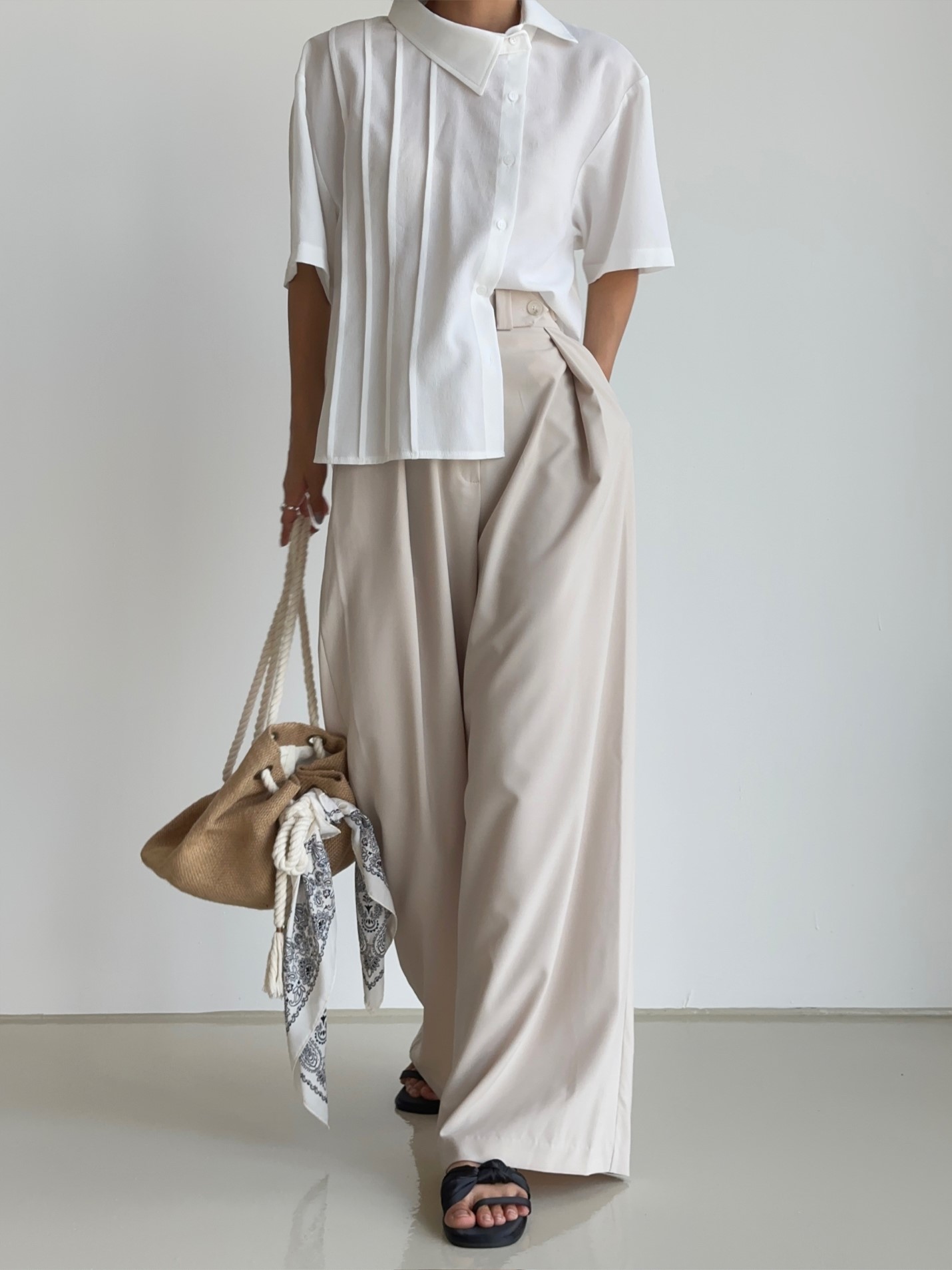 品名:베니원턱PT ◎※☞颜色:베이지 ◎※☞尺寸:FREE ◎※☞材质:스판 5%,聚酯 95% ◎※☞注意事项:只能干洗,只能手洗,不能手洗,机洗,不能使用漂白剂,不能烘干,不能熨烫,不能曲折
