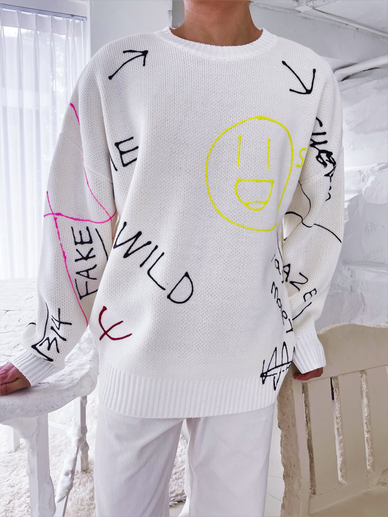 品名:낙서페인팅 자가드 니트 ◎※☞颜色:블랙, 아이보리, 코발트 ◎※☞尺寸:FREE ◎※☞材质:腈纶 100% ◎※☞注意事项:只能干洗,只能手洗,不能手洗,机洗,不能使用漂白剂,不能烘干,不能熨烫,不能曲折