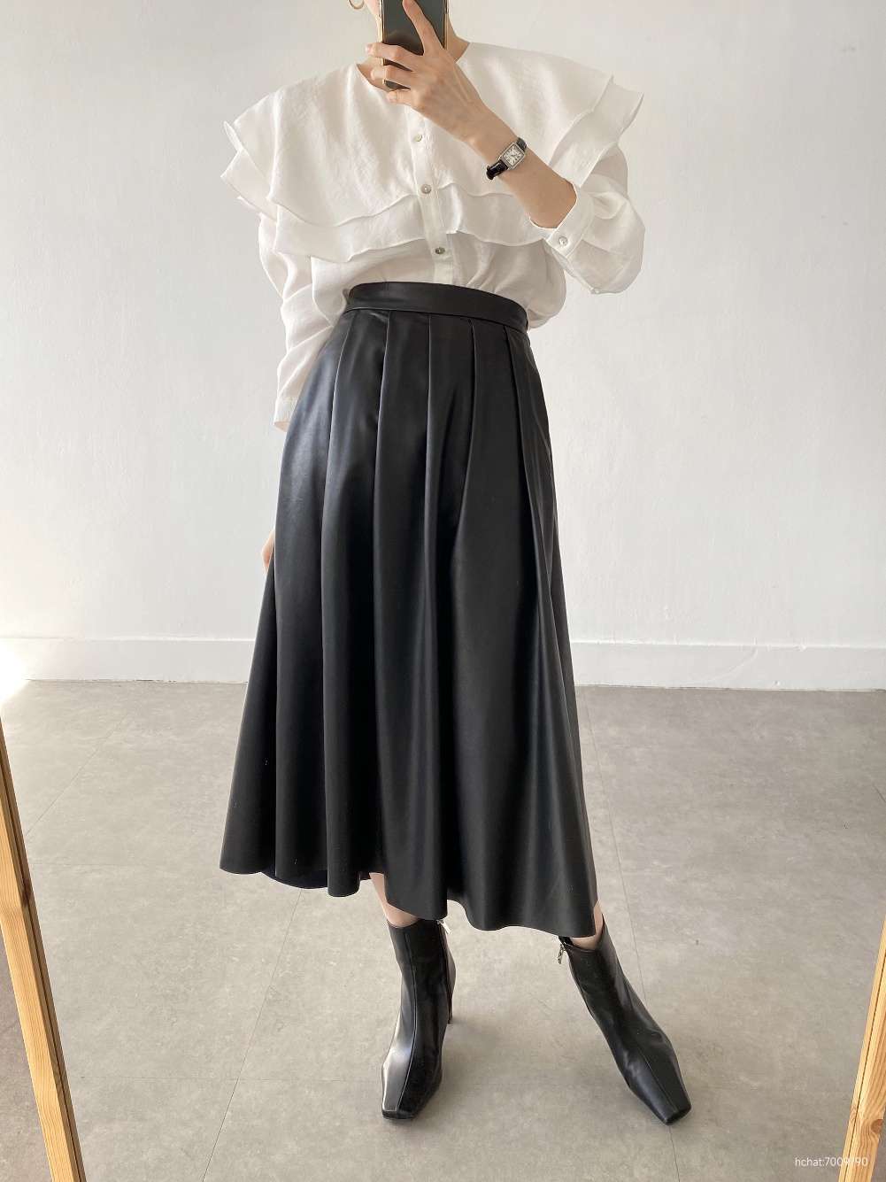레더주름스커트1
