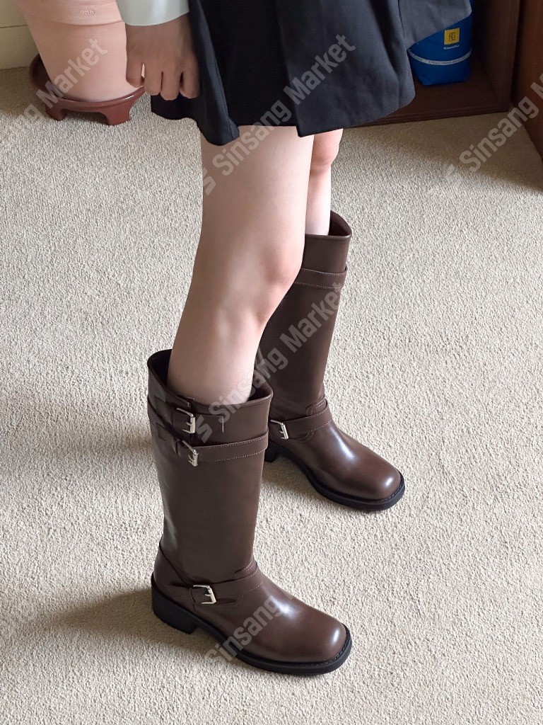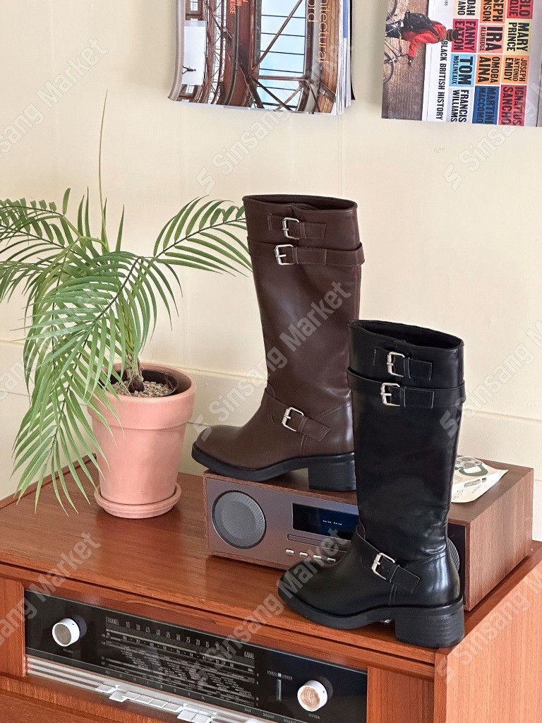 品名:SB 0176 쓰리버클 벨트부츠 바이커 라이더 미들 미디 롱부츠 ◎※☞颜色:브라운, 블랙 ◎※☞尺寸:225, 230, 235, 240, 245, 250 ◎※☞材质:기타 100%
