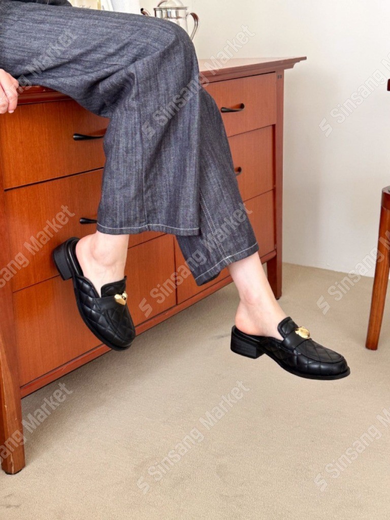 品名:SB 0165 4cm_하트 누빔 퀼팅 뮬 슬리퍼 블로퍼 ◎※☞颜色:블랙 ◎※☞尺寸:225, 230, 235, 240, 245, 250 ◎※☞材质:기타 100%