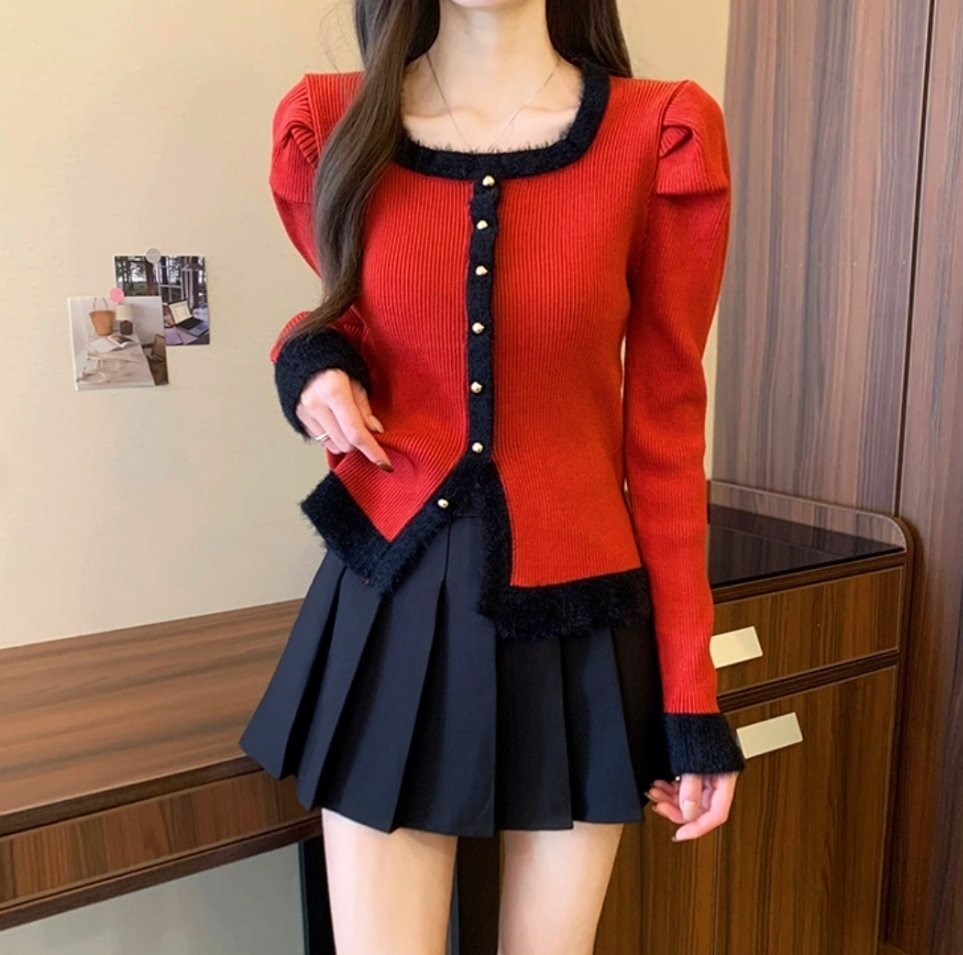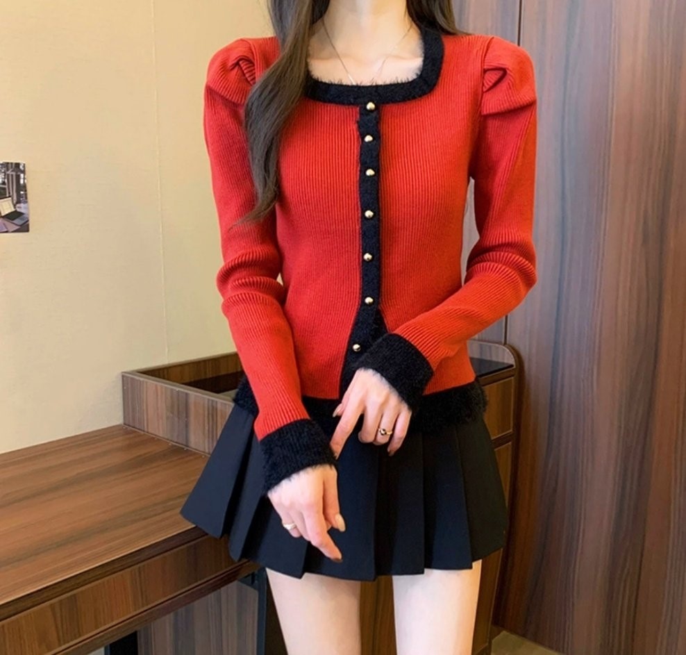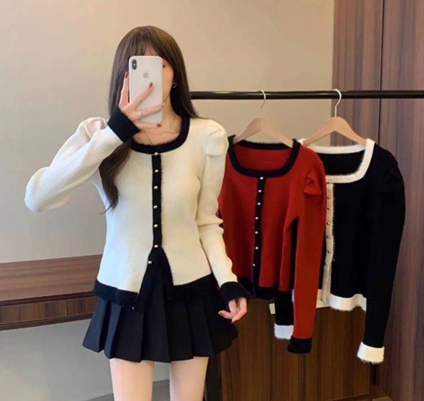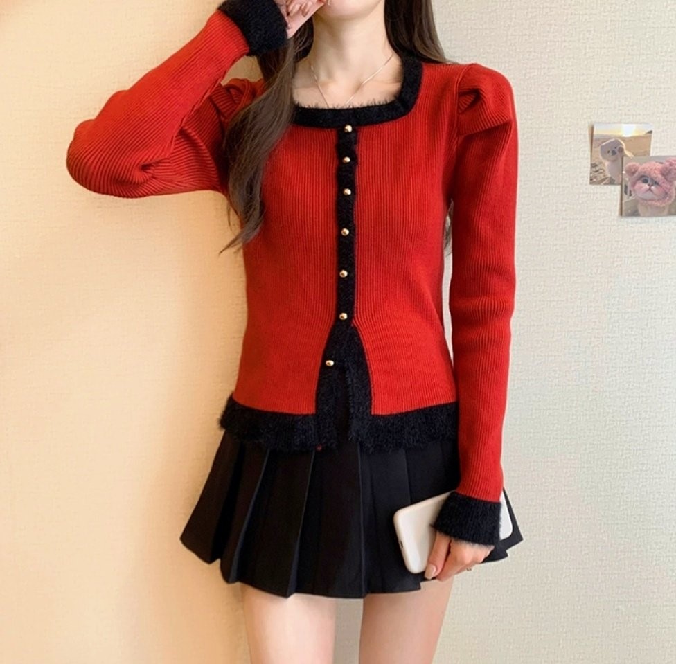 品名:부클스퀘어 골지니트 ◎※☞颜色:레드, 블랙, 화이트 ◎※☞尺寸:FREE ◎※☞材质:纯棉 100%